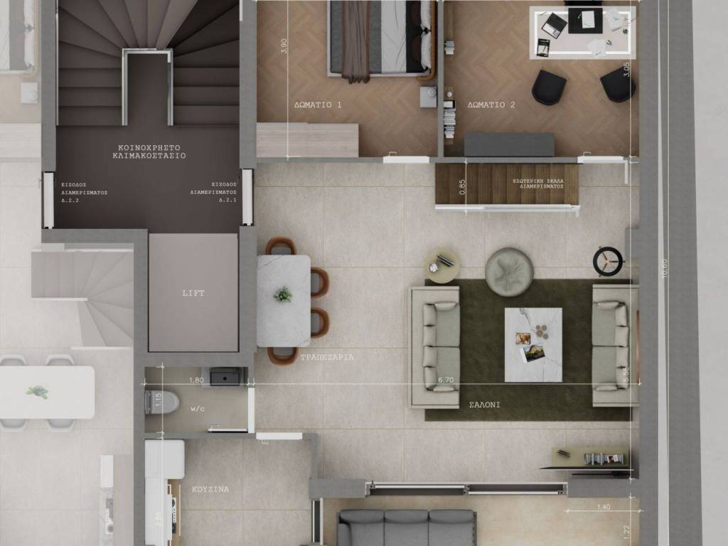 Maisonette For sale, floor: 2nd, 3rd (2 Levels), in Kalamaria - Agios Ioannis. The Maisonette is 160 sq.m.. It consists of: 4 bedrooms (1 Master), 2 bathrooms, 1 kitchens, 1 living rooms, while it has the following parkings: 2 Underground. The property was built in 2025, the energy certificate is: Not required. The property's status is: New development, Under construction, it is close to Transportation, Seaside, Square, it has Sea, Unobstructed, City views view and it has Southeast orientation and it also has the following unique features and advantages: Elevator, Storage, Internal staircase. Price: €475.000. KW North, contact phone: 2310588411, 2310588408, email: kwnorth@kwgreece.gr, website: