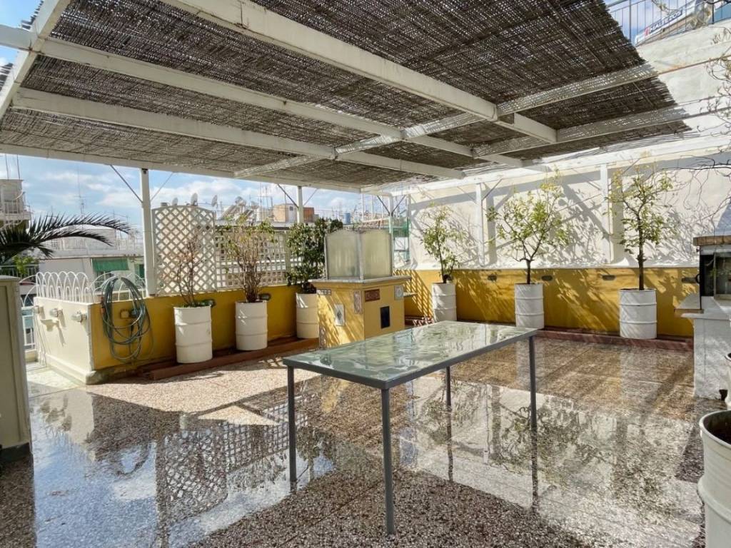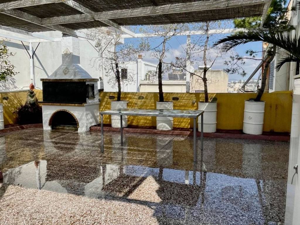Ιδιαίτερου χαρακτήρα και vintage αισθητικής ρετιρέ, σε άνοιγμα, με θέα Υμηττό, ηλιόλουστο, διαθέτει 100τ.μ μεγάλες βεράντες, με σταθερά θερμομωνομένα σκίαστρα και καλαμωτή, με μεγάλο BBQ και εξωτερικό νεροχύτη, σε πολύ καλό σημείο κέντρο απόκεντρο, πολύ κοντά στην αγορά και το τέρμα της λεωφορείο γραμμής (227), 950μ. από την πλατεία Βαρνάβα και το Παναθηναϊκό Στάδιο, σε αρίστη κατάσταση. Χωρίς μεσιτική αμοιβή για τον αγοραστή. Το parking είναι μισθωμένο και ΔΕΝ είναι ιδιοκτησία του ακινήτου.