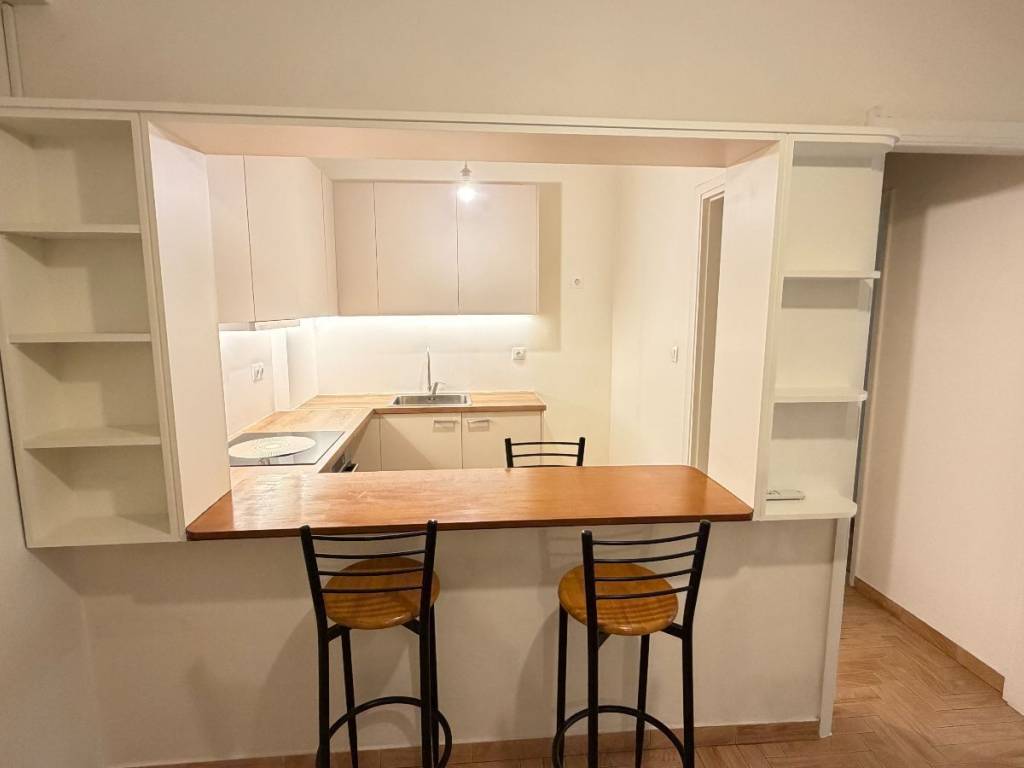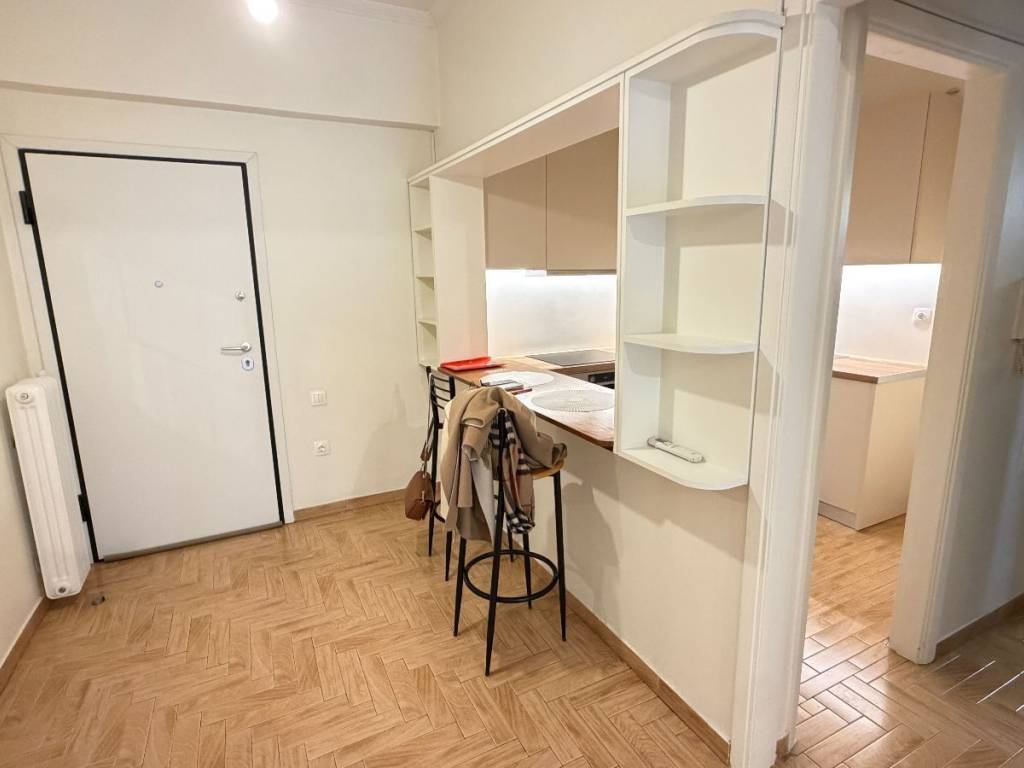 Excellent renovated apartment in the center of Nea Smyrni. It is an apartment with 1 bedroom, a comfortable living room, a large hall and an open plan kitchen with a built-in oven. It has a security door, aluminum frames, screens, air conditioning and heating with a central natural gas boiler. The apartment is fully renovated with new electrical and plumbing installations. The apartment building is in excellent condition and the point is central with direct access to the center of Nea Smyrni and Syngrou Avenue.