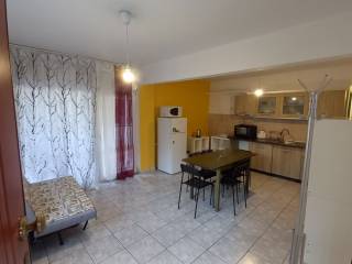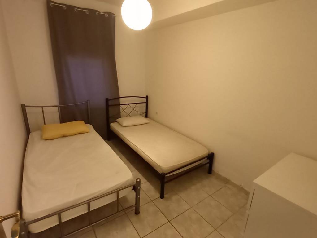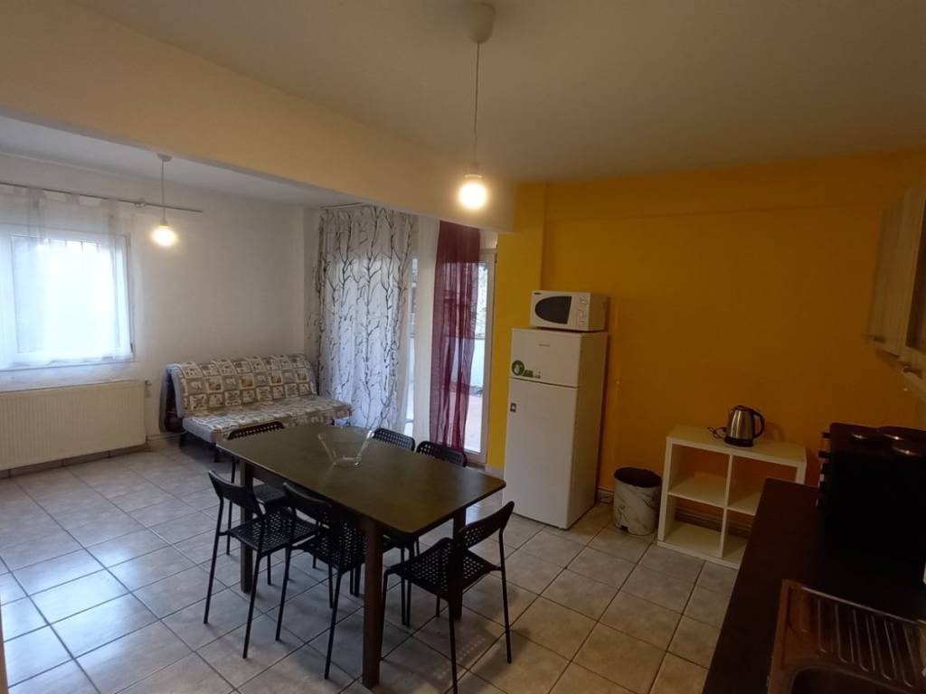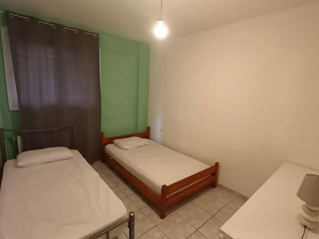 Ground-floor corner apartment of 60 sq.m. for rent with a yard. It consists of 2 bedrooms, a living room with kitchen, and a bathroom. The apartment has central natural gas heating and is bright and functional. No common expenses, ideal for a couple or a small family.