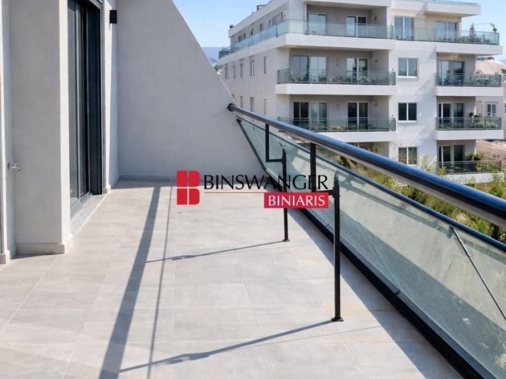 NEA IONIA: directly opposite Neas Filadelfeias Park, a 121 sq.m. newly built penthouse duplex apartment (4th–5th floor) is available for sale. The property is dual-aspect and particularly bright, featuring modern design and energy class A, with large verandas, unobstructed views, a closed parking space, and a storage room. More specifically, the 4th floor (81 sq.m.) comprises one bedroom with walk-in closet and its own small balcony, a spacious living room, kitchen, and bathroom. The 5th floor (40 sq.m.) hosts two additional bedrooms with access to a large veranda and one bathroom. It features energy-efficient aluminum window frames with thermal break and double glazing, insect screens, autonomous heating with a heat pump, fan coil units for heating and cooling, a solar water heater, granite floor tiles, a security door, video intercom, an alarm system, and an elevator. The property is located just a 10-minute walk from the ISAP station of Nea Ionia, and within very close distance to supermarkets, shops, and major road arteries. Immediately available. Sale price: €399,500 (PROPERTY ID 7375 - AGENT ID 26138) - BINSWANGER BINIARIS - CERTIFIED REALTORS - CONSULTANTS - APPRAISER - PROPERTY MANAGERS, ESTABLISHED YEAR 1993, 1 Demokratias Avenue & Kifissias Avenue, Neo Psychiko. Tel. 210 6829000. Web: www.binswangerbiniaris.com
