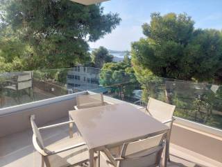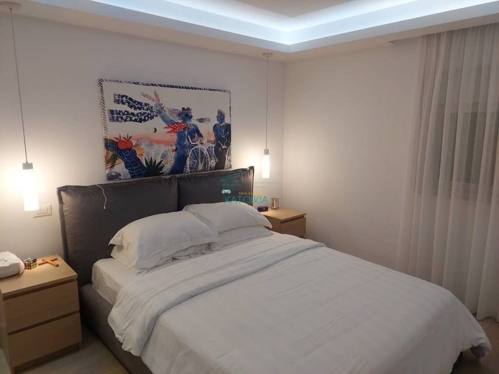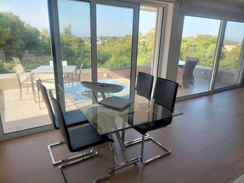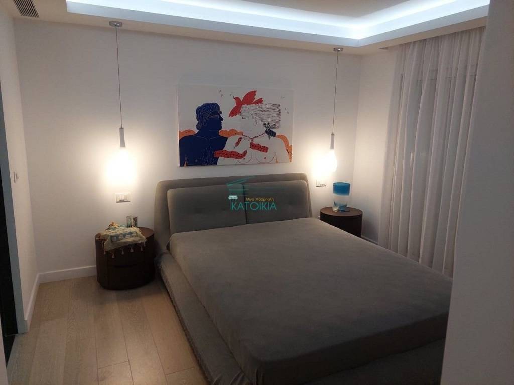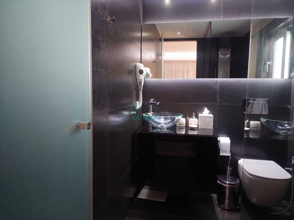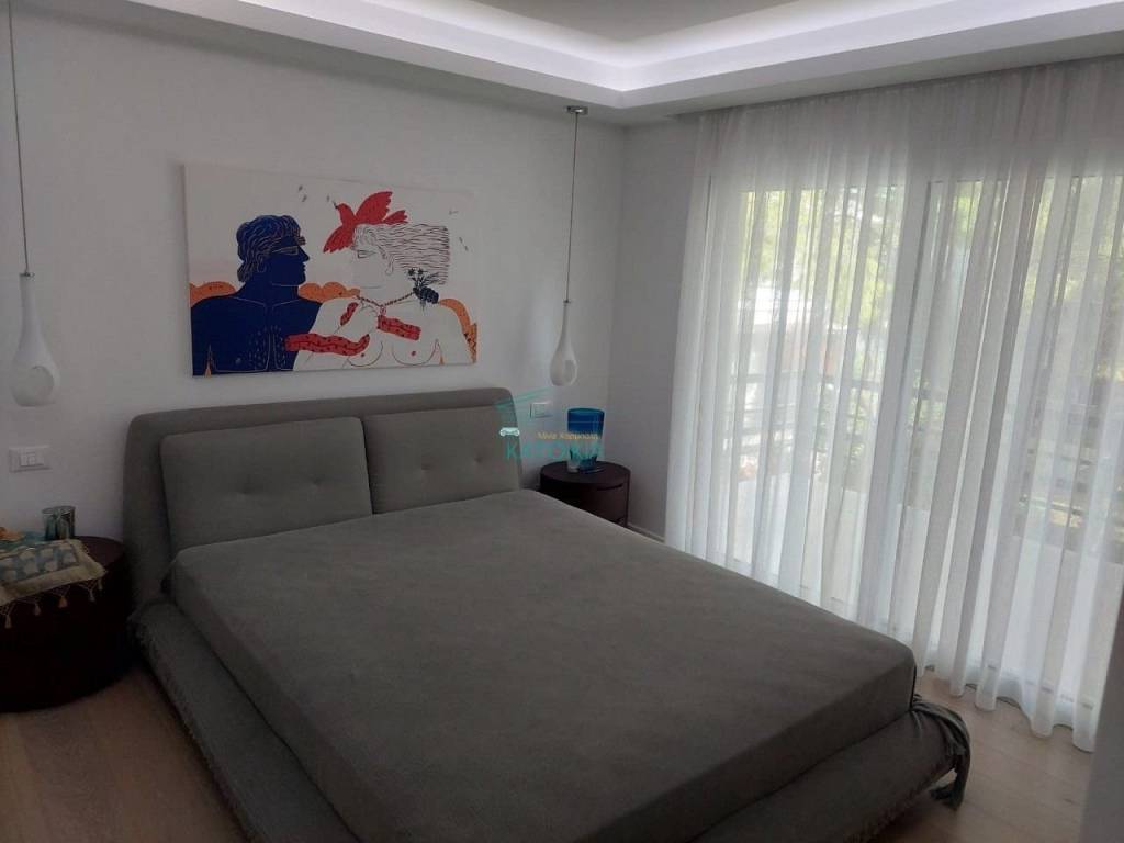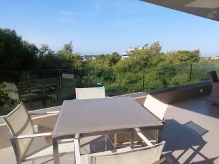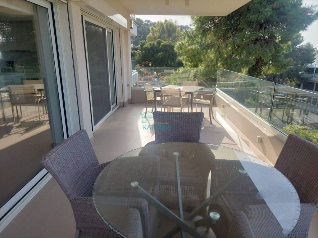 Vouliagmeni center luxurious apartment 98 sq meters uper 2nd floor, very bright, fully renovated 2022, overlooking greenery and partly sea view. Offers living room with open plan kitchen, electrical appliances, beautiful balcony at the frontage, 2 master bedrooms, 2 bathrooms, 1 wc, laundry, autonomous heating and cooling system, solar panel, aluminum frames, double glazing, net, electrical shutters, security alarm system and door. Immediately available, code 58440