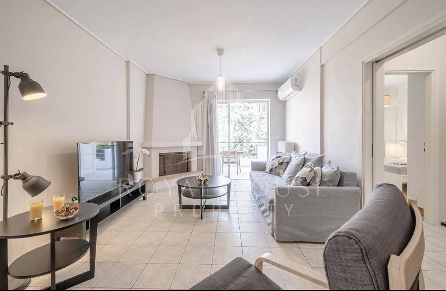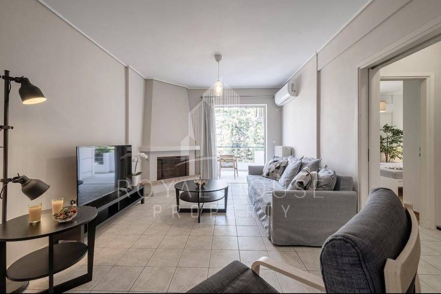 Marousi, Nerantziotissa - Apartment 85sqm fully furnished, bedrooms 2, levels 1, 2nd, fully renovated, year built 2000, renovation year 2022, energy class A, living room, kitchen, bathroom, heating type: autonomous (oil), air condition, parking covered, quiet, dual aspect apartment, luminous, frontage, painted, storage space, fireplace, large balconies, elevator, aluminum frames, double glazed windows, ceramic tiles floors, secure door, video doorbell, luxurious, residential zone, special offer.