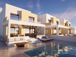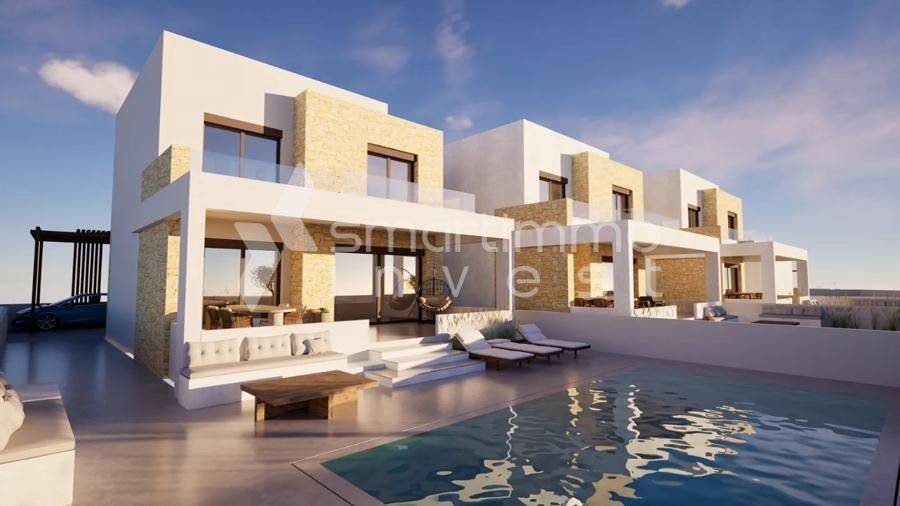 In one of the most beautiful and authentic areas of Rhodes, in the picturesque village of Kalathos near Lindos, modern luxury villas of exceptional aesthetic and architectural quality are offered for sale, at a short distance of just 400 meters from the area's beautiful beach. The complex consists of newly built, two-level residences of 120 sq.m. each, designed to provide comfort, privacy and a high standard of living on one of the Mediterranean's most popular islands. Each villa features three spacious bedrooms, three bathrooms, a bright open-plan living area with an open kitchen, and large terraces that offer ideal conditions for relaxation and entertaining. The architectural design combines modern lines with natural materials such as stone and wood, creating an elegant result that blends perfectly with the island’s landscape. The exterior of each residence is carefully finished and includes a private pool of approximately 32 sq.m., a parking space with a wooden pergola, and a landscaped garden with the potential for planting and creating a beautiful outdoor environment. The properties sit on plots of varying sizes and are an excellent choice both as private holiday homes and for investment through tourist rentals, as the Lindos area is one of Rhodes’ most popular destinations with strong international demand. The construction is contemporary and energy-efficient, with an A+ energy rating, ensuring high build quality and low energy costs.