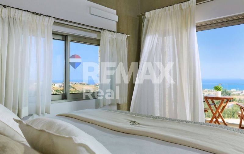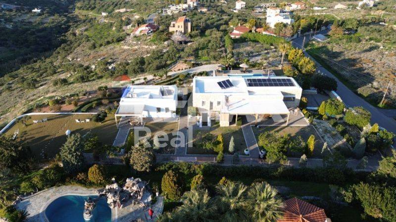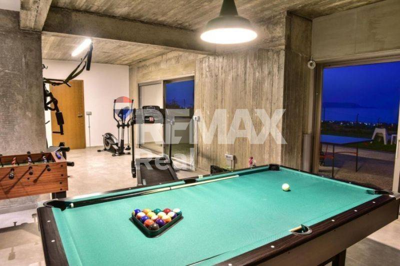 Luxury 450sqm Villa on an 11,500sqm Plot in Kokkini Hani One of the most complete luxury villas in the Heraklion region. Built in two sections, this stunning property offers 6 bedrooms, 5 bathrooms, a private pool, BBQ area, gym, sauna, garage, and even its own hillside chapel. Located on an elevated plot, the villa guarantees unbothered panoramic sea views—arguably some of the best in Crete. Every room is designed to capture the breathtaking scenery, ensuring a connection to nature no matter where you are in the house. A place where you can truly escape and never get bored. A standout feature is the private chapel, uniquely built into the hillside. It’s a one-of-a-kind setting for intimate moments or grand celebrations. A spacious patio in front makes it ideal for hosting life’s most special events. For entertainment and wellness, the ground floor offers a gym and playroom with billiards, table tennis, foosball, and a great selection of fitness equipment. Sharing the same area, a sauna for five offers yet another incredible view. Sustainability is at the heart of this villa. Designed to be eco-friendly and allergy-conscious, the home features an advanced water filtration system—including an extra filter for pure drinking water. The pool is chlorine-free, maintained naturally with salt for a healthier swim. The beautifully landscaped gardens are filled with olive, citrus, walnut, and pear trees, along with multiple furnished relaxation areas—sun loungers, umbrellas, armchairs, and hammocks—perfect for adapting to the Mediterranean lifestyle. This villa is more than a home—it’s an experience.