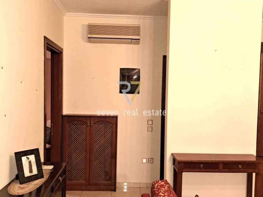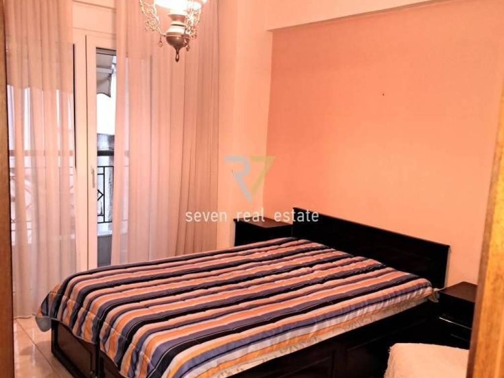Thessaloniki, Ano Toumpa: Luxurious, bright, 95 sq m. apartment for rent on the 3rd floor with elevator and individual natural gas heating. It consists of 2 bedrooms, a large living room and kitchen and a bathroom. It is fully furnished, equipped, with all electrical appliances, built in 2006 and has 3 verandas with a pleasant view, synthetic frames with double glazing, screens, electric awnings, heavy-duty armored door, new air conditioning, wardrobes in the rooms, tiled floors and parking space in the basement. It is ideal for families. It is located in a very well-maintained building and close to the market, schools and with easy access to the regional road. Price 800€ | Property Code: #38415