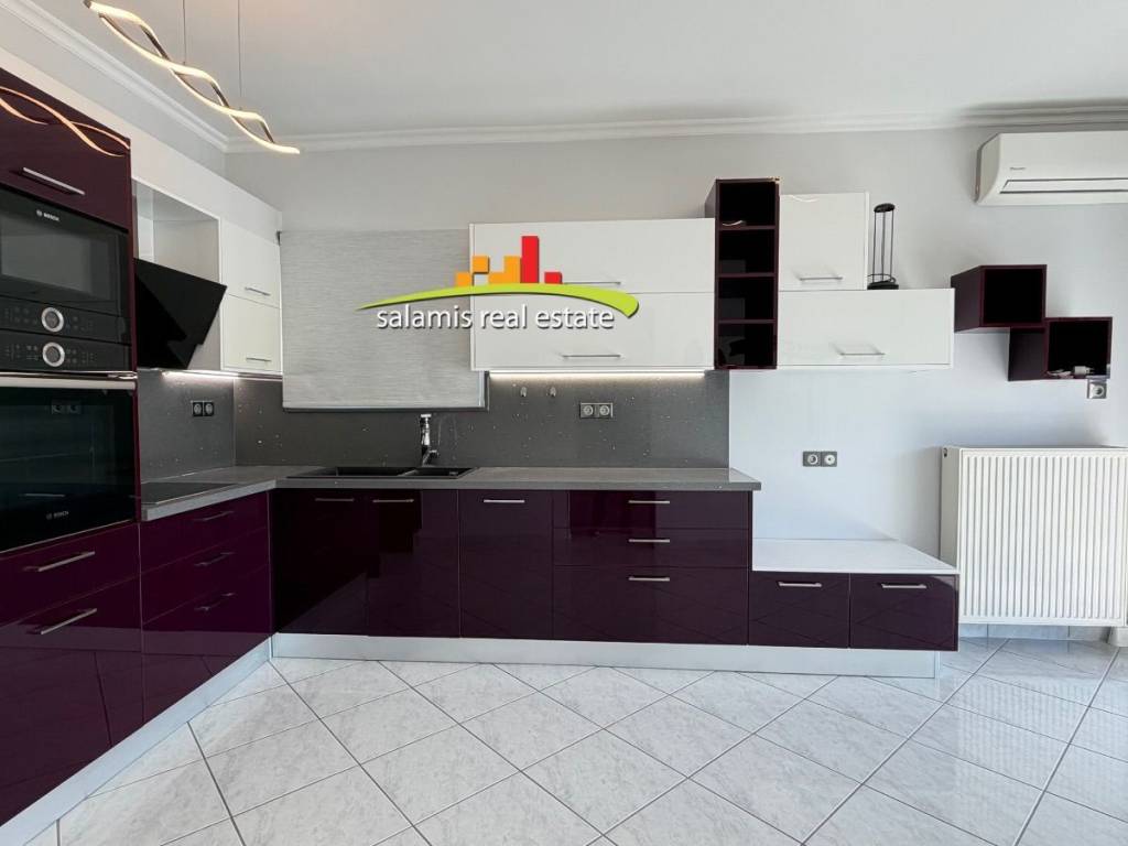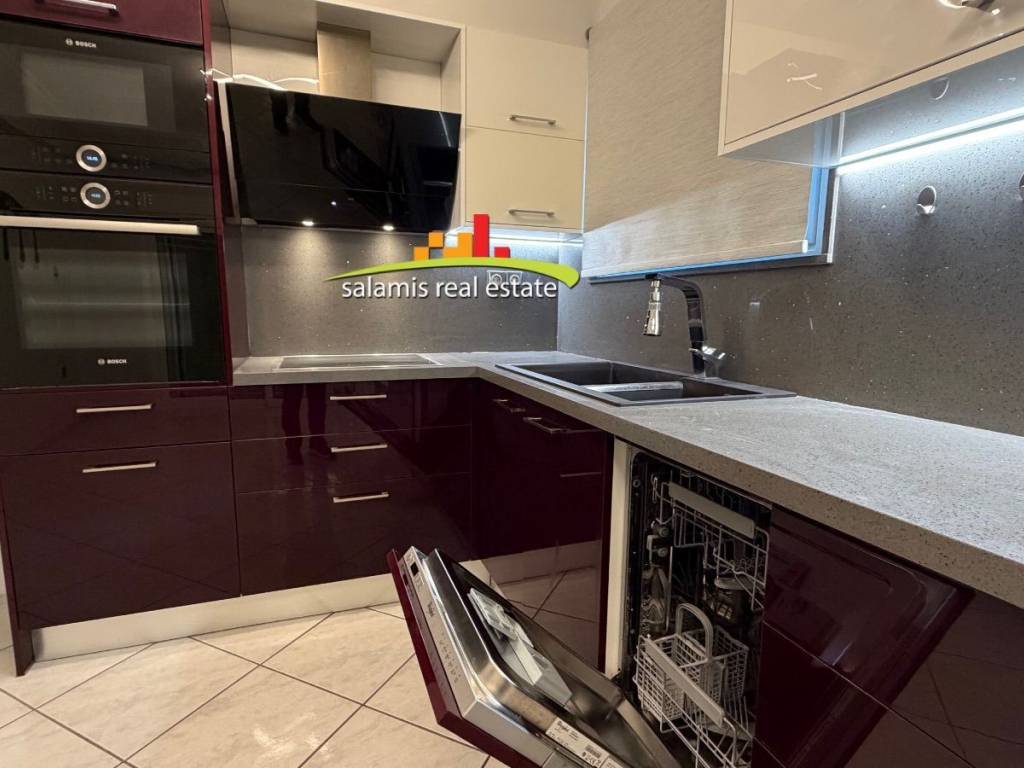 SALAMINA – Central Seafront, opposite the Marina For rent an excellent 105 sq.m. floor apartment, ideally located on the seafront of Salamina, directly opposite the marina and within walking distance of the central market. The apartment is in excellent condition and consists of: • Two spacious bedrooms • Large separate living room • Large kitchen with access to a spacious veranda • Comfortable bathroom • Second kitchen area with its own large veranda Additional features: • Electric awnings on all verandas • Electric aluminum window frames • Autonomous heating with its own boiler • Solar water heater • Zero shared building expenses The kitchen is equipped with appliances including: oven, cooktop, microwave oven, dishwasher and extractor hood. The location is ideal for permanent residence, as it is close to schools, shops and all amenities of the seaside market area. Important note: The property offers many advantages. The only drawback is that there is no parking directly in front of the building, however parking is available approximately 50–60 meters away.