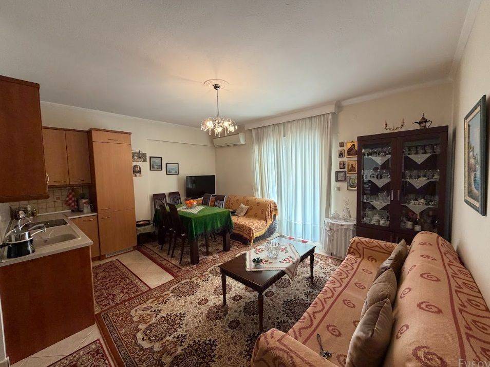 Apartment for sale, 60 sq.m., in excellent condition, located on the 1st floor, built in 2006. It consists of 1 bedroom, living room, kitchen, and bathroom. The property includes a 15 sq.m. storage room in the basement and a parking space. It features aluminum window frames with double glazing, tiled floors, a security door, air conditioning, and a solar water heater. The apartment is corner-positioned, bright, and offers large balconies with awnings, in a building with an elevator. It is located just 500 meters from the sea, with open views, and close to shops, schools, and all essential services. Ideal for permanent residence or investment.