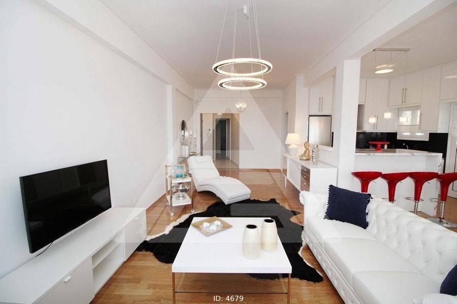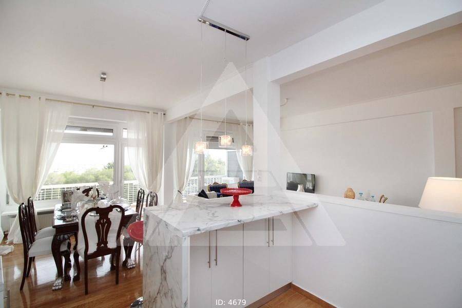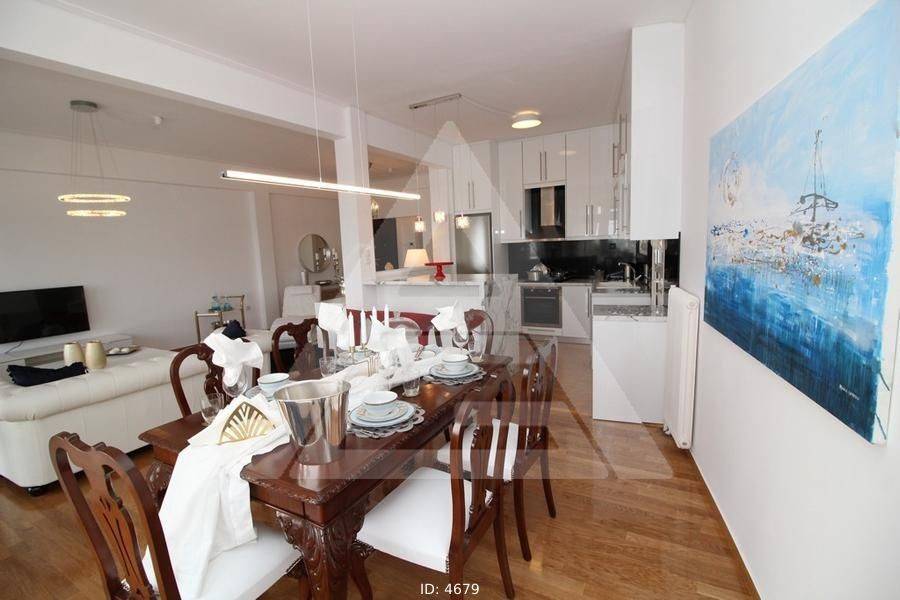 Alimos - Apartment 107sqm fully furnished, bedrooms 2, levels 1, 3rd, excellent condition, year built 1964, renovation year 2019, energy class F, living room, hall, kitchen, 2 bathrooms, wc, heating type: autonomous (natural gas), air condition, luminous, sea view, frontage, balconies, tents, elevator, built in appliances, aluminum frames, double glazed windows, wood & tile floors, secure door, luxurious, residential zone, access from asphalt.