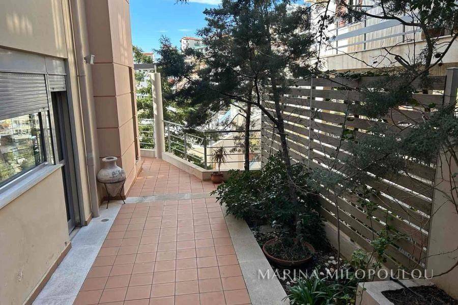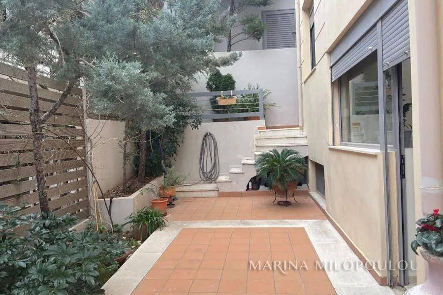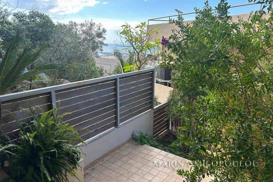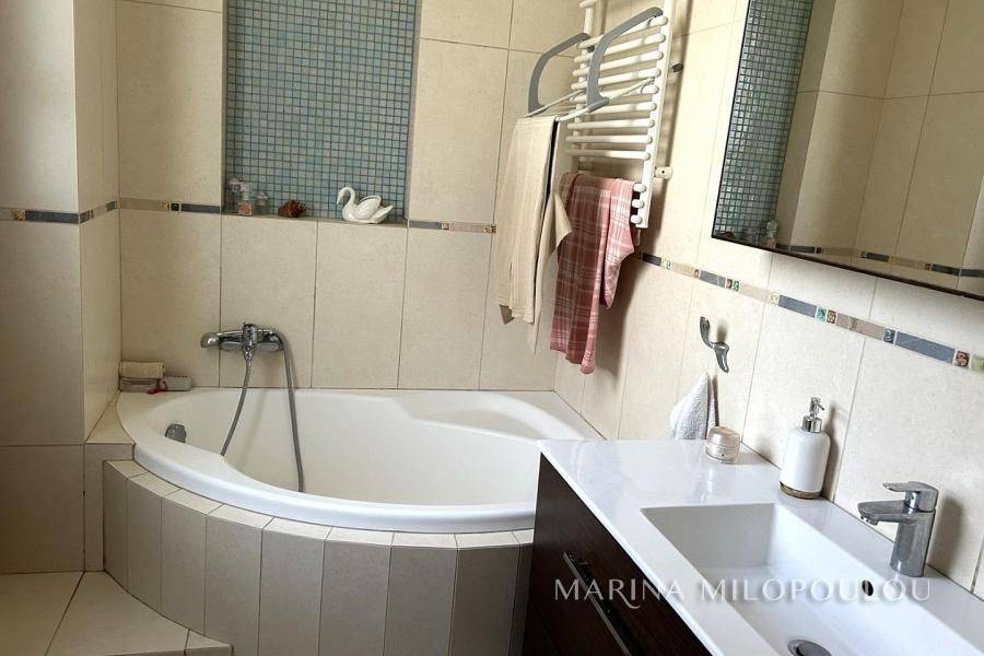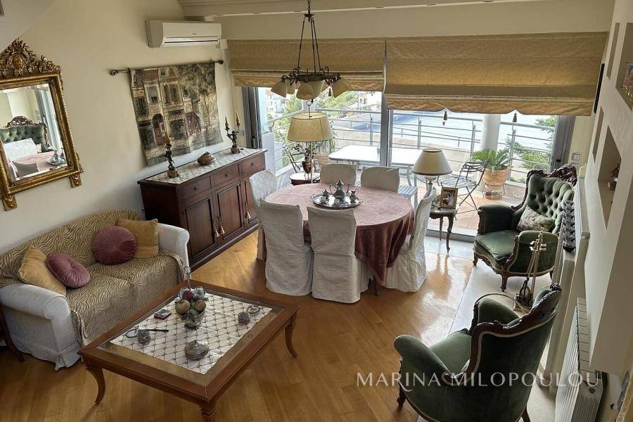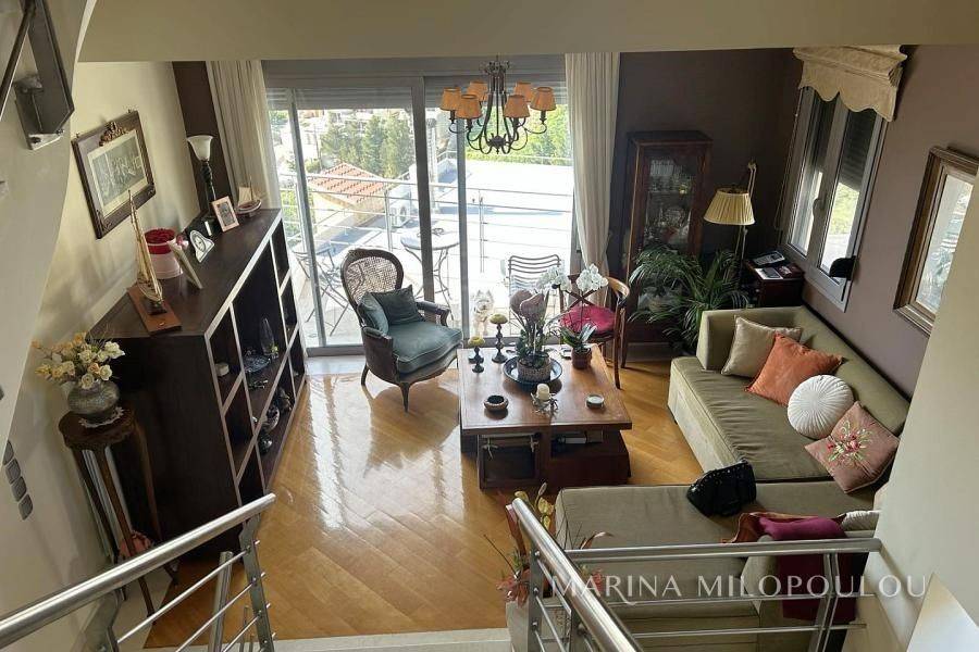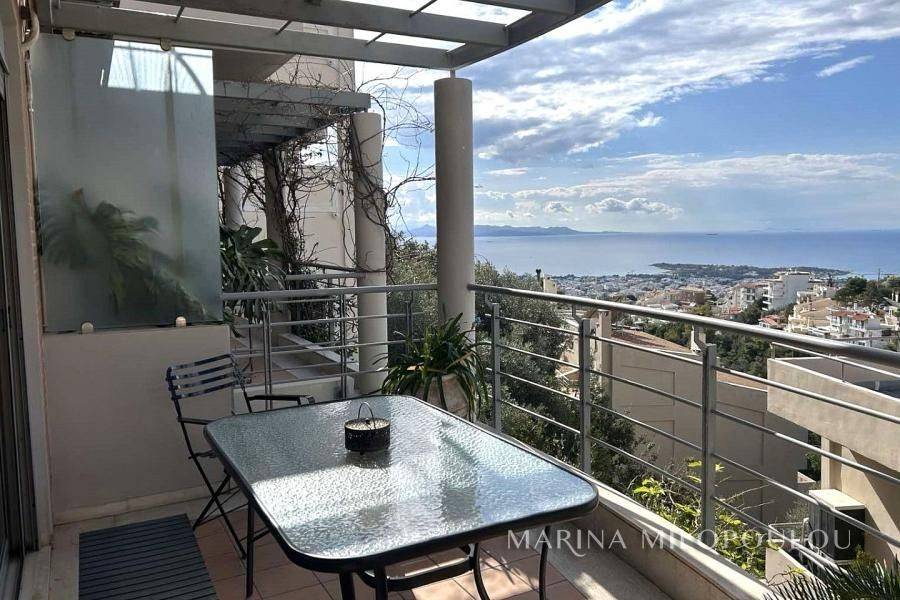 VOULA-Panorama, 5-level maisonette, with elevator, total area 225sqm, with unlimited sea view, northwest orientation. -Ground floor reception-living room in an uneven layout. -1st level downstairs, open kitchen fully equipped and exit to garden with BBQ. Going down a few steps is the 2nd living-dining room. -2nd floor below, office, 1 bathroom and laundry room and a 7 sq.m. warehouse. Going down a few steps you will find the play room, 1 toilet and an exit to the garden. -1st level up 2 bedrooms and 1 bathroom. -2nd level up 1 master bedroom with walk-in closet. It has balconies with sea view on all levels, security door, independent oil heating, fireplace, 2 A/Cs, boiler, double glazing with screens, electric shutters, oak floors in all main areas, marble staircase, alarm, open parking space. In a quiet street in Panorama, 700m from the square of Agios Nektarios with a mini market and cafe, 3 km from the center of Voula, 4 km from the second beach of Voula.