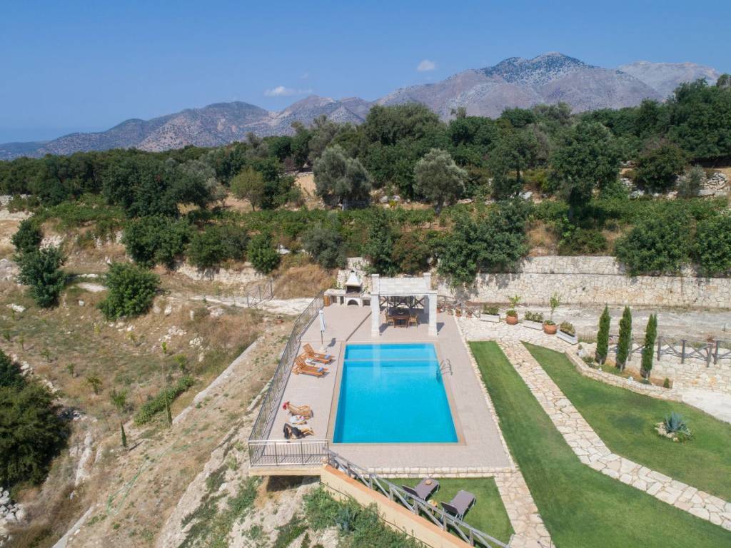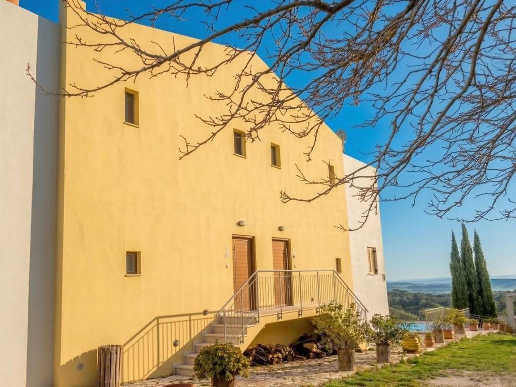 Set within a 6,000 sqm estate on the outskirts of Keramota village and perched on a gentle hill, the villa enjoys an elevated position 14 km from the famed beaches of Panormo, Rethymno. Its hillside setting affords guests complete privacy across the outdoor spaces, sweeping panoramic views from the surrounding countryside to the sea, and an atmosphere of serene seclusion. Here, the pace of life softens—and time itself seems to stand still. This imposing structure is spread across 3 levels and consists of 4 independent units. The entrance door opens to the middle level, which features the 2 main residences measuring 100 sqm each. Inside each of these you will find a fully equipped kitchen and a spacious living room with a staircase leading up to the upper level’s 2 bedrooms and 2 bathrooms. The lower ground level is designed for effortless indoor-outdoor living, featuring the remaining 2 units which enjoy direct access to the outdoor area. Each unit measures 50sqm and contains its very own kitchen and living area along with one bedroom and bathroom. In essence, a total of 300sqm of space offering 4 kitchens, 4 living rooms, 6 bedrooms and 6 bathrooms (200sqm on the upper and middle levels and 100sqm on the lower level). The interior designs, made from high-quality materials, reflect the owner’s elegant taste and echo the simplicity in the architecture, the natural light and the minimal aesthetics. Exteriors Nearly 2,000 sqm of the grounds have been thoughtfully landscaped and fenced. Outside you’ll find a shaded veranda seating area, a covered pergola with a barbecue and dining table, and a 60 sqm private swimming pool with sunbeds, umbrellas and an adjoining children’s pool. The remaining c. 4,000 sqm of generous private grounds remain untouched, a gentle swell of land, dotted with olive trees and yearning for the opportunity to be developed into a peaceful retreat amid aromatic herbs, flowering beds and mature trees. Location The location offers the unique privilege of staying in one of the most authentic regions of Crete, where daily life is still shaped by longstanding traditions and deeply rooted values, yet only 25 minutes from the bustling city of Rethymno. Here, the spirit of the island remains genuine and vibrant. In the nearby villages of Melidoni, Margarites, Zoniana and Anogeia, the opportunity awaits to meet local residents, experience their warm hospitality and gain a true sense of Cretan culture and way of life. Perhaps, more importantly, the surrounding area is rich in remarkable sights. Discover the legendary Idaion Andron cave, located on the eastern slopes of Mount Psiloritis and believed in Greek mythology to be the birthplace of Zeus himself. Visit the cave of Sfendoni and the intriguing wax museum in Zoniana, explore the famous Melidoni Cave, and wander through the traditional pottery workshops of Margarites, where centuries-old craftsmanship continues to thrive. For the history enthusiasts, there is the Museum of Ancient Eleftherna, the first archaeological site museum in Crete, attesting to the existence of Crete’s Homeric past, which rivals those of Olympia, Delphi, and Vergina. The investment case The villa presents a unique opportunity for a savvy investor to create a secluded private retreat and play a part in further developing the wider region into a year-round destination of choice for discerning travelers. The property’s roughly 4000 sqm of private grounds yet to be landscaped lend themselves to creating authentic Cretan experiential tourism initiatives, be it yoga/wellness retreats, private events focused on wine tasting or Cretan gastronomy dining experiences. Cultural tourism has come to represent around 40% of the global tourism economy and is set to continue to grow. Investors may also want to consider further optimizing the current indoor layout, creating one single structure instead of the presently 4 autonomous units, providing additional upside to what is already a successful operational villa with close to 9 years of track record on the short-term rental market.