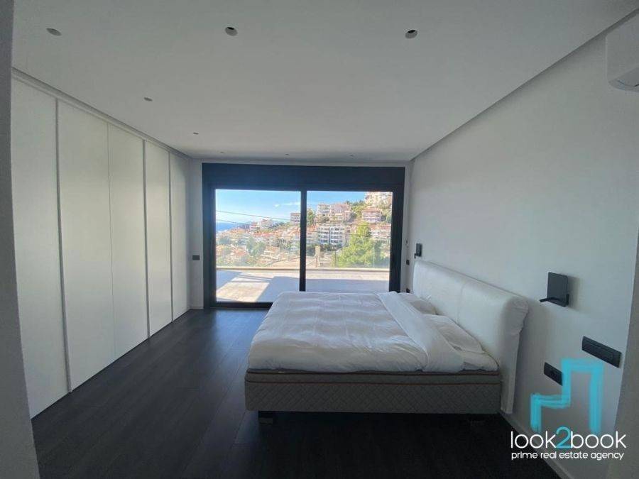 In Voula, in the Panorama area, an impressive luxury maisonette of 450 sq.m., furnished, built in 2022, in amazing condition, is available for rent. The property is spread over four levels with a private elevator and offers unlimited views, combining luxury, comfort and high aesthetics. The residence has a spacious living room, modern kitchen, six bedrooms, six bathrooms and an additional WC. The spaces are particularly bright, airy and front-facing, with large verandas that offer excellent views and ideal relaxation areas. In addition, it has autonomous natural gas heating, solar water heater, double glazing, security door, jacuzzi, storage room and three parking spaces. Outside there is a private swimming pool and a beautifully landscaped garden, offering a high standard of living in one of the most privileged and quiet areas of Voula. This is an excellent residence of high standards. Price: €15,000, Ref. : 27462, Look2Book Tel: 2108940006,6944991499, e-mail: info@look2book.gr, website: www.look2book.gr