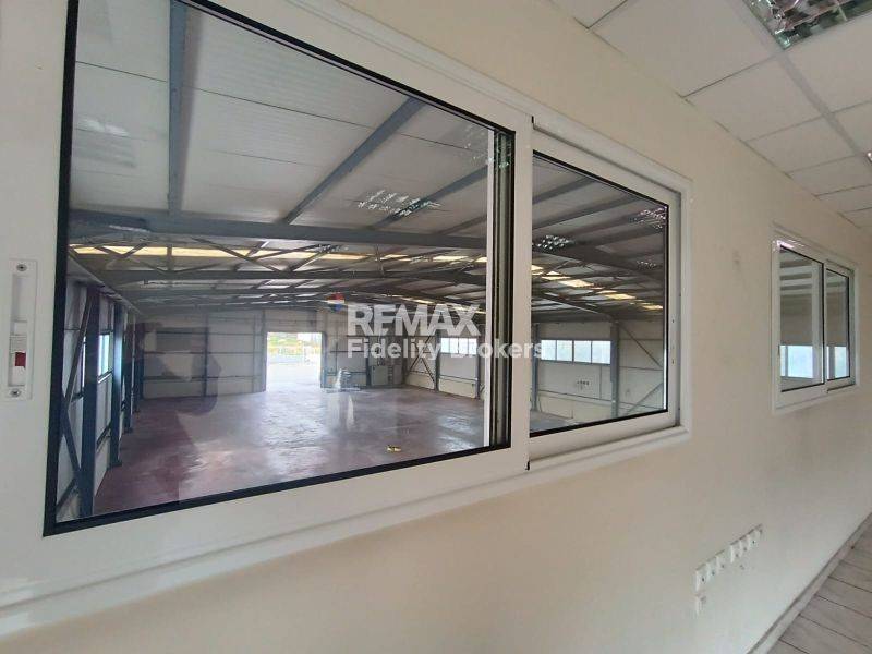 Στεγασμένος χώρος 1780τμ ενιαίος με ύψος 7.00 μέτρα και με 320τμ γραφεία (σε δύο επίπεδα 160 έκαστο). Το δάπεδο είναι βιομηχανικό ενώ στα γραφεία είναι με πλακάκι.