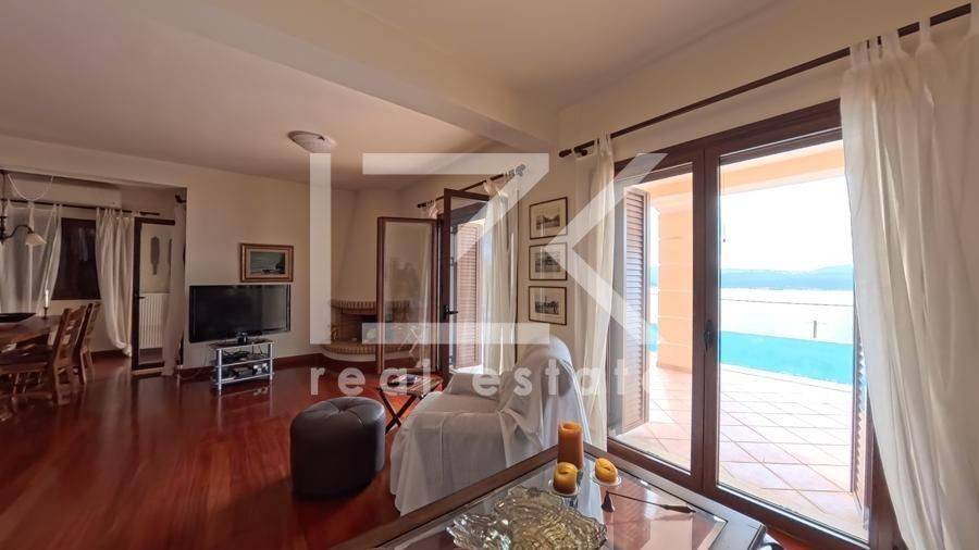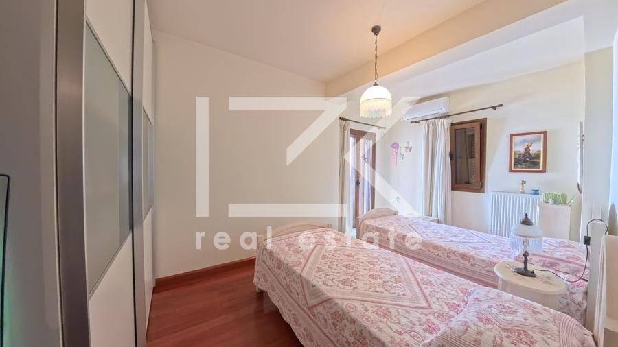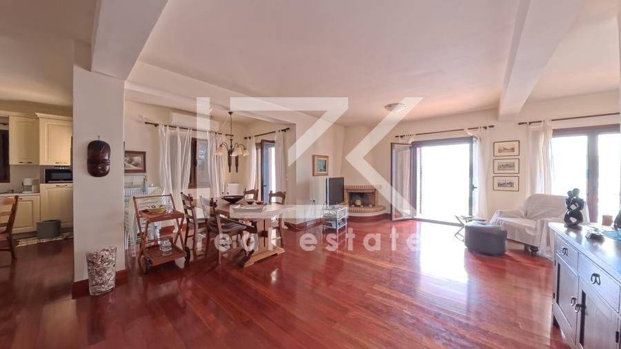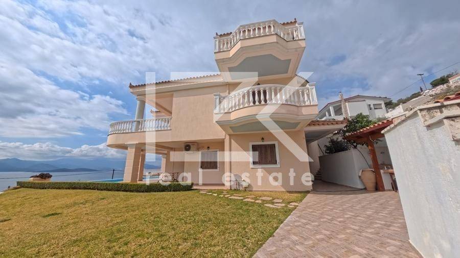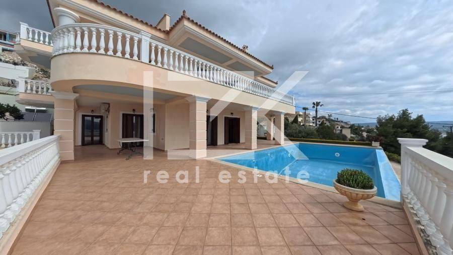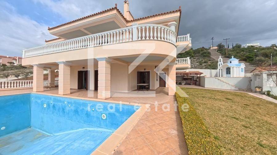 Luxury Four-Level Villa 521 sq.m. with Panoramic Sea & Mountain Views A modern, high-specification residence with a total surface of 521 sq.m., developed across four levels (basement – ground floor – 1st – 2nd floor), is offered for sale on a 1,050 sq.m. plot, built in 2005. The property stands out for its uninterrupted panoramic views of both the sea and the surrounding mountains, its well-thought-out layout, and the versatility of its spaces, offering comfort and multiple usage options. Property Layout Basement (200 sq.m.) This level includes: Independent studio apartment with bedroom and bathroom Parking areas Storage and auxiliary spaces Boiler room Ground Floor (127 sq.m.) Spacious living area with fireplace Dining area in open-plan layout with the kitchen 2 Bedrooms 2 Bathrooms Large verandas with open views 1st & 2nd Floors The upper levels accommodate two independent maisonettes, each measuring 97 sq.m., with identical layout: First level: open-plan living and dining area with kitchen, 1 bedroom, and 1 bathroom Second level: 1 bedroom and 1 bathroom All interior spaces have direct access to verandas, enhancing natural light and the connection with the outdoor surroundings. Outdoor Areas The exterior of the property is fully landscaped and designed for both relaxation and entertaining, featuring: Garden Swimming pool Barbecue area Private chapel Additional Features Energy-efficient aluminum frames with thermal break and double glazing Solid oak flooring throughout Security doors Internal staircase Alarm system Satellite connection This property represents an excellent choice for those seeking a high-quality residence in a beautiful natural setting, with easy access to the sea and strong potential for hosting or investment use.