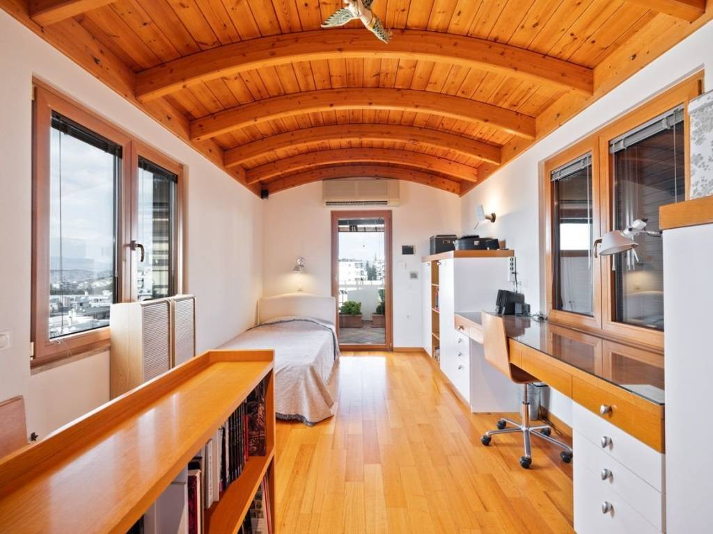 In the area of Kareas in Vyronas, this exceptional luxury four-level residence of 312 sq.m., in excellent condition, built in 2000, is located. This stunning home welcomes us with a marble entrance 28 s.q.m, where we find the glass elevator and the revolving marble staircase, the use of which leads us to all its other areas. On the first floor we find an independent 62 sq.m. apartment featuring one bedroom, living room and office, as well as a bathroom. On the second floor we encounter the luxurious 195 sq.m. maisonette with the impressive open-plan living room, dining area and kitchen area, plus a bathroom and storage room. The excellent architecture and the use of high-quality construction materials, combined with the light that bathes the entire space, coming both from the veranda and from the glass roof, offer a unique sense of luxury and freedom. Going up the revolving marble staircase, we are led to the third floor, where there are two bedrooms and a workspace, as well as a bathroom. The view of the living room from the third-floor interior balcony is unique. Via an internal wooden staircase, we are led to the attic, where an independent 27 sq.m. area welcomes us, used as an office and relaxation space and featuring its own bathroom. The terrace on this level offers panoramic views both toward Athens and Mount Hymettus. The functionality of the entire residence is enhanced by the 141 sq.m. basement, where there is a private gym area as well as an office area with WC and kitchen. The barbecue area and the garden, together with the privacy of the property, add additional relaxation options, and combined with the two covered parking spaces make the residence a privileged choice. The entire residence enjoys prestige, exudes timeless luxury, ideally serves family life and elegant entertaining. A rare opportunity for those seeking luxury living in Kareas. The area of Kareas is a southeastern neighborhood of Vyronas and also borders the area of Ilioupoli to the west, southwest, and south. The distance from Kareas to the center of the city of Athens, via the local road network, is approximately 6 kilometers. The area is known for its abundant greenery and quiet residential neighborhoods, which makes it a popular choice for families and individuals seeking a more relaxed and peaceful lifestyle away from the noisy city center. The area of Kareas is well connected to the rest of Athens via public transportation, with bus and tram lines providing access to the city’s main attractions and shopping centers. The area of Kareas is an ideal place for those seeking a balance between suburban living and urban convenience.