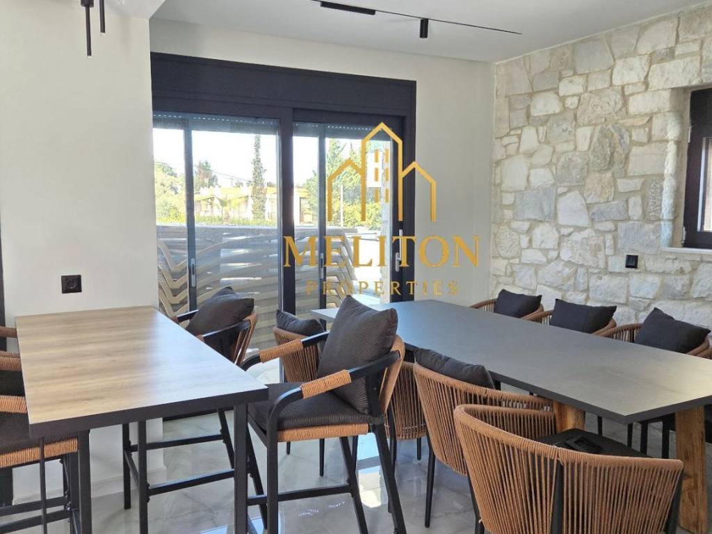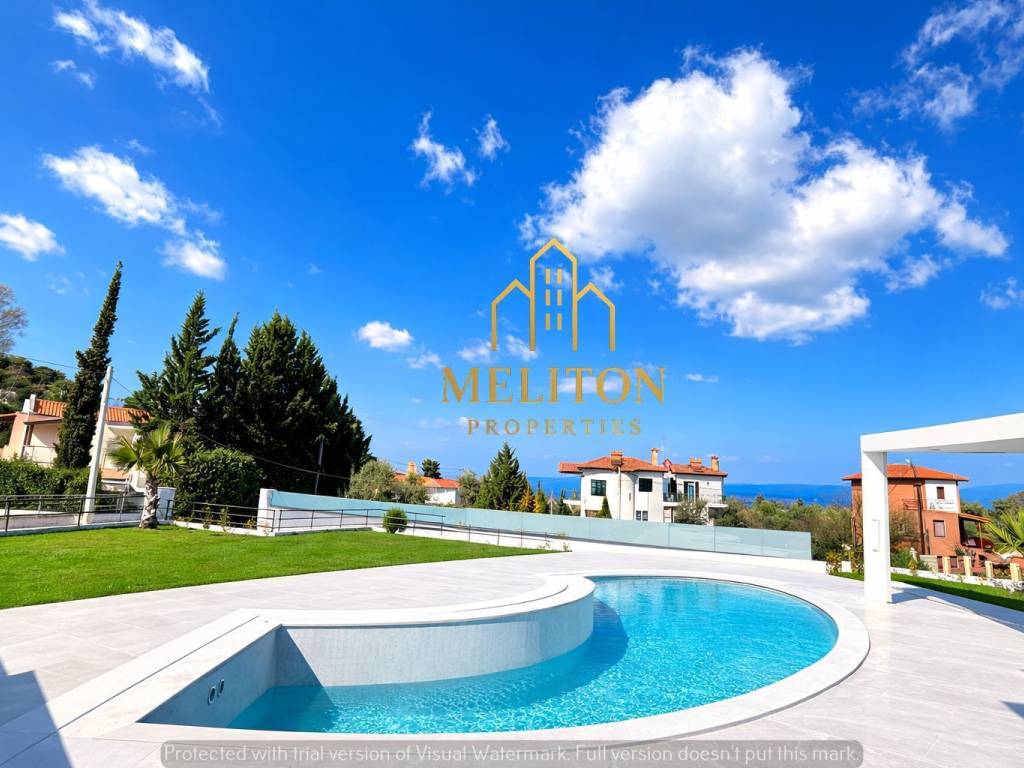 For sale a newly built luxury villa of 264 sq m in a private complex of 3 properties in the area of Hanioti. The house holds 4 bedrooms, 3 bathrooms, bbq, private pool and parking. The house offers very beautiful sea view and is ideal for private use as for investment. It is also sold furnished and has excellent materials and high quality electrical appliances. Price: 1,000,000 euros Information Meliton Properties +306908215663 Your ID and VAT number are required for the property show. Brokerage fee 2% plus VAT 24%