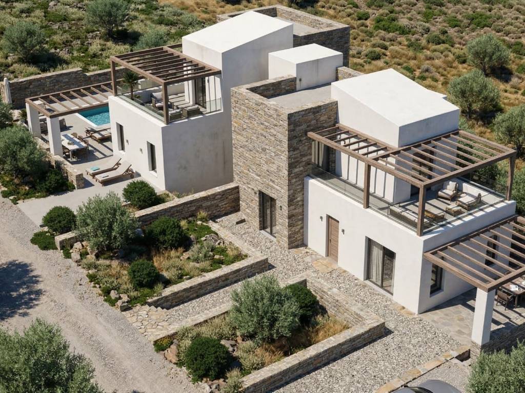 In a peaceful countryside setting in the wider Exantis area of Rethymno, two newly built stone residences are being offered for sale. This carefully designed project combines contemporary architecture with the timeless character of natural stone, creating homes with strong identity, elegant proportions and a true connection to the Cretan landscape. Each residence is arranged over two levels and offers 3 bedrooms, 2 bathrooms, and a bright open-plan living room and kitchen area, while each home also enjoys its own private swimming pool, terraces, pergolas and beautifully designed outdoor living areas. On the ground floor of each residence there is a large oren space with kitchen - dining room - living room, one bedroom and one bathroom, while one the first floor there are two bedrooms and a bathroom. The first floor of the each residence also has a large balcony with views of Psiloritis mountains and the wider area, an ideal spot for relaxation with family or friends. The specific property is to be built and is expected to be completed in 16 months. The houses are built to the highest and modern standards in terms of safety, energy saving and construction quality. The houses has special architectural elements, combining the modern with the traditional and will be constructed with a mix of white local stone and traditional plastering in order to be blend with the surroundings. The two villas will be delivered fully equipped, as far as the main electrical appliances are also included. One of the project’s strongest assets is the amount of outdoor space available. Each residence enjoys approximately 1,300 sq.m. of plot area for exclusive use, offering a rare sense of openness, privacy and independence. This gives the development a true countryside character and adds substantial value for buyers seeking space, comfort and a stronger connection to the natural surroundings. The location further enhances the value of the development. The villas are set in the countryside near Exantis, surrounded by nature and offering a peaceful and authentic Cretan environment. At the same time, they enjoy easy access to two of the most popular seaside villages in the region, Bali and Panormo, both known for their beautiful beaches, relaxed atmosphere, tavernas, cafés and appealing coastal lifestyle. The sea is approximately 3 km from the properties, offering an ideal balance between rural tranquility and coastal accessibility. This means owners can enjoy privacy, natural surroundings and a true countryside setting, while remaining only minutes away from beaches and seaside amenities. These residences are ideal either for individual purchase, for use as luxury private homes or holiday villas, or as a combined premium investment opportunity in one of the most desirable areas of North Crete.The project combines architectural quality, local knowledge and a location of genuine appeal. Legal Expenses The commission payable to our agency by the purchaser is set at 3% of the final purchase price, plus VAT. The invoice will be issued by “HOMELAND GREECE L.P. Real Estate Agency Services,” registered with VAT number 802598224, Tax Office of Rethymno, and (Γ.Ε.Μ.Η) General Commercial Registry number 179310650000. ‘’HOMELAND GREECE L.P’’ assumes no responsibility for the accuracy or completeness of the information contained in this document. The details are provided for informational purposes only and may be subject to errors, omissions, changes in price, or withdrawal without prior notice. All transfer-related costs, including taxes, legal fees, notary fees, and land registry fees, are the sole responsibility of the purchaser. Legal Notice Regarding Residential Properties The residential properties included in our listing have been carefully selected to ensure the existence of the necessary ownership transfer titles and relevant documents from the appropriate authorities, such as the Land Registry, the Urban Planning Office, and, where required, the local Archaeological Service. However, the company ‘’HOMELAND GREECE L.P." bears no responsibility regarding the legality of the documents accompanying the properties or their suitability for habitation or potential renovation. The responsibility for verifying the above rests solely with the prospective buyers, who are advised to conduct appropriate due diligence through specialized professionals, such as a lawyer and an engineer, before signing the final purchase agreements. Please note that the indicated surface area of the property refers to the gross habitable area, which includes both the interior and exterior walls.
