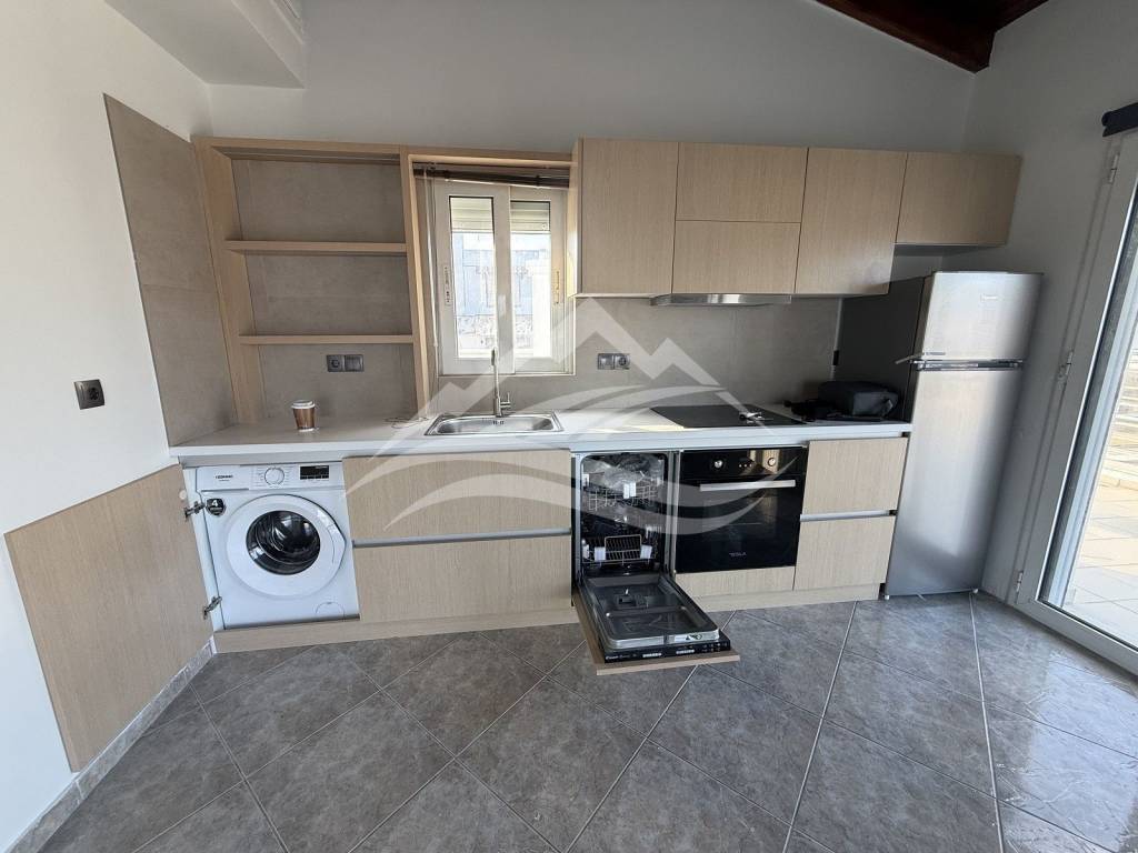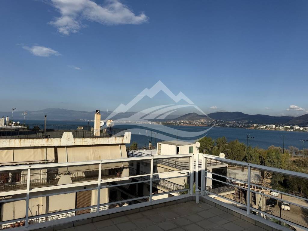 HALKIDA - TEΝNIS, Flat 45 sq.m., 1 level, 5th floor, penthouse, for students, at residential area, year of construction 1990, reconstructed in 2025, used, with view sea, 1 b/r, living room, bathroom, kitchen, double-sided, front facing, bright, corner, heating autonomous, air condition, with energy class N/A, with floor type tile, with aluminum joinery, double glass pane, double glazing, pest net, elevator, security door, veranda 150 sq.m., price 580€, code 3950
