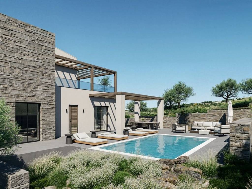 Set in a peaceful countryside location in the wider Exantis area of Rethymno, this newly built stone residence has been designed to offer privacy, architectural quality and comfortable outdoor living in an authentic Cretan setting. The villa is arranged over two levels and combines the timeless beauty of natural stone with clean contemporary lines and a practical, elegant layout. It offers 3 bedrooms, 2 bathrooms, and a bright open-plan living room and kitchen area, creating a home that feels both refined and highly functional. On the ground floor of the residence there is a large oren space with kitchen - dining room - living room, one bedroom and one bathroom, while one the first floor there are two bedrooms and a bathroom. The first floor of the residence also has a large balcony with views of Psiloritis mountains and the wider area, an ideal spot for relaxation with family or friends. The specific property is to be built and is expected to be completed in 16 months. The house is built to the highest and modern standards in terms of safety, energy saving and construction quality. The house has special architectural elements, combining the modern with the traditional and will be constructed with a mix of white local stone and traditional plastering in order to be blend with the surroundings. The villa will be delivered fully equipped, as far as the main electrical appliances are also included. A major part of the property’s appeal lies in its outdoor areas. The residence enjoys its own private swimming pool, pergolas, terraces and beautifully arranged exterior spaces designed for relaxation, entertaining and making full use of the Mediterranean climate. The architecture allows the indoor and outdoor spaces to connect naturally, creating a home that is ideal both for everyday living and for holidays. The overall concept is not simply about building a house, but about creating a residence with character, architectural identity and a real connection to its environment. The use of stone, the balanced volumes and the generous exterior living areas give the property a sense of quality, privacy and understated luxury. Beyond the house itself, the location is one of its strongest advantages. The property is situated in the countryside near Exantis, in a peaceful natural setting that offers privacy and an authentic Cretan atmosphere. At the same time, it is ideally positioned close to the famous seaside villages of Bali and Panormo, two of the most desirable coastal destinations in the area, known for their beaches, tavernas, cafés and relaxed lifestyle. The sea is approximately 3 km away, giving the property the ideal balance between countryside tranquility and easy access to the coast. This residence represents an excellent opportunity for private use, as a luxury holiday home, or as a high-quality rental investment. Legal Expenses The commission payable to our agency by the purchaser is set at 3% of the final purchase price, plus VAT. The invoice will be issued by “HOMELAND GREECE L.P. Real Estate Agency Services,” registered with VAT number 802598224, Tax Office of Rethymno, and (Γ.Ε.Μ.Η) General Commercial Registry number 179310650000. ‘’HOMELAND GREECE L.P’’ assumes no responsibility for the accuracy or completeness of the information contained in this document. The details are provided for informational purposes only and may be subject to errors, omissions, changes in price, or withdrawal without prior notice. All transfer-related costs, including taxes, legal fees, notary fees, and land registry fees, are the sole responsibility of the purchaser. Legal Notice Regarding Residential Properties The residential properties included in our listing have been carefully selected to ensure the existence of the necessary ownership transfer titles and relevant documents from the appropriate authorities, such as the Land Registry, the Urban Planning Office, and, where required, the local Archaeological Service. However, the company ‘’HOMELAND GREECE L.P." bears no responsibility regarding the legality of the documents accompanying the properties or their suitability for habitation or potential renovation. The responsibility for verifying the above rests solely with the prospective buyers, who are advised to conduct appropriate due diligence through specialized professionals, such as a lawyer and an engineer, before signing the final purchase agreements. Please note that the indicated surface area of the property refers to the gross habitable area, which includes both the interior and exterior walls.