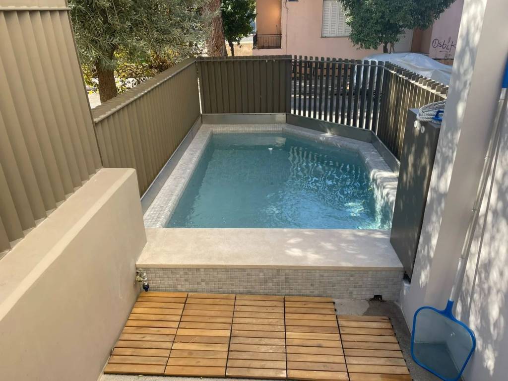 ωραίο μοντέρνο διαμέρισμα, με 2υ/δ, κουζίνα σαλονι με τζάκι, συναγερμός, ηλιακός, κλιματισμός, κήπος, πισίνα