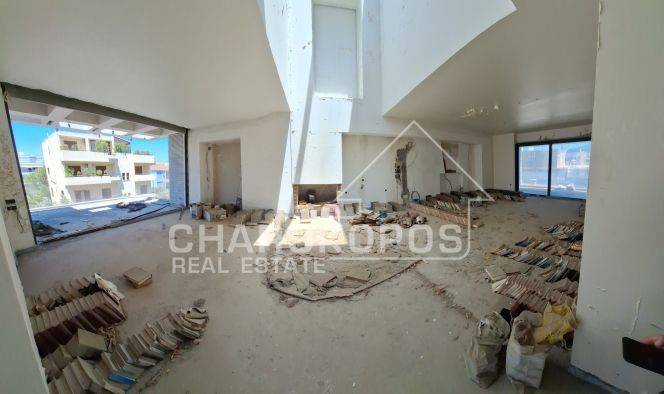 For sale maisonette of 272 sq m. 3rd and 4th floor in Neo Psychiko. It consists of reception areas, kitchen, 5 bedrooms, 4 bathrooms, WC and balconies. The 3rd floor of 120 sq m includes a spacious living room with dining room and patio of 14 sq m, kitchen and WC. The 4th floor of 119 sq m + 33 sq m sofia consists of two two-story rooms with internal staircase, each with its own toilet and skylights, a master bedroom with dressing room and bathroom, another bedroom with skylight, a smaller room and a bathroom. The property also has a storage room in the first basement and a parking space of 46 sq m. in the second basement. The completion stage of the maisonette is approximately 60-70%: the floors have been poured with concrete and underfloor heating, all the preparatory work by the painters has been done on the walls (with 3 hands), there are aluminum frames for the ceiling and walls (with thermal facade, screens, recalls, extra clear transparent glass) and electric roller shutters (with installation to open and close in zones and for alarm traps in frames and roller shutters), built-in cisterns, panels and the electrical switching material have been installed and most of the required plasterboards and false ceilings have been constructed, meaning that the final coating of the floors, the large balcony door in the living room, the fireplace configuration, internal doors, wardrobes, kitchen, sanitary ware, final painting, alarms, cameras, solar water heater, air conditioners, decorative investment materials (cement mortars, marbles, etc.) and lighting spots. The maisonette has provision for the installation of air conditioning and VRV units up to 150,000 BTU, alarm and c.c.t.v. with a circuit of 5 private cameras (on its 3 balconies and 2 on the terrace). The maisonette is located in a very good location in Neo Psychiko, close to the market and Agia Sophia Square. The spot on the map does not indicate the exact location of the property, but close to it. The brokerage fee in the case of a purchase and sale amounts to 2% of the total actual value of the main contract plus the legal VAT (24%). The presentation of the identity card and the VAT number is necessary for the indication of the property. On our website: https://www.charokopos.gr/ you can find more information and properties.