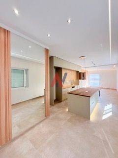 GLYFADA – Terpsithea: An exceptional 111 sq.m. floor apartment is available for sale, located on the 2nd floor of a well-maintained apartment building. This is a property originally built in 1974, which was radically renovated in 2025 with modern materials and high-standard aesthetics, offering an elegant and perfectly functional living space. The apartment consists of three comfortable bedrooms, two modern, minimalist design bathrooms, a spacious and exceptionally bright living room with large balcony doors, and an open-plan kitchen of contemporary aesthetic with excellent ergonomics. The large perimeter verandas offer unobstructed views towards the open horizon and the mountain, while the southwestern orientation ensures abundant natural light throughout the day. The property is airy, front-facing, quiet, and bright, with an energy class B+. It features aluminum frames with double glazing and screens, floors with quality tiles, a security door, night-time electricity tariff, air conditioning, and an elevator, while it does not have central heating. Pets are allowed. It is located in a residential zone, within the city plan, in a quiet neighborhood of Terpsithea, with easy asphalt road access, making it an ideal choice for owner-occupation or investment.