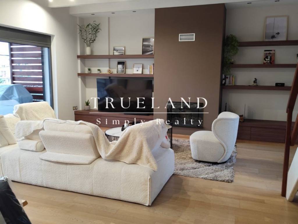 Excellent 140 sq m maisonette built in 2012 on the first and second floors of energy class B+ with minimal features. The property is front-facing and has 3 bedrooms, one with a walk-in closet and 2 bathrooms. A bright and airy house with individual gas heating per level, air conditioning, fireplace, solar, night power, thermally insulated frames with triplex glazing which are the top construction choice combining high energy efficiency, safety and sound insulation, the latest technology frames are complemented by electric roller shutters and screens. In addition, it has a security door on both levels, an alarm, and security camera installation for absolute security. Its features include built-in stoves and oven. Finally, the property has an underground parking space and 1 storage room, which you can reach with the building's elevator. An excellent choice of property in a very quiet neighborhood. Price: €1,400. TRUELAND REAL ESTATE IKE, Contact Phone: 2144080890, email: info@trueland.gr