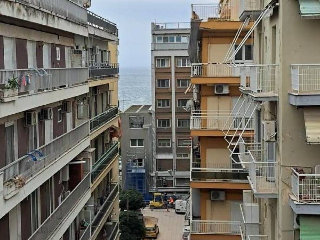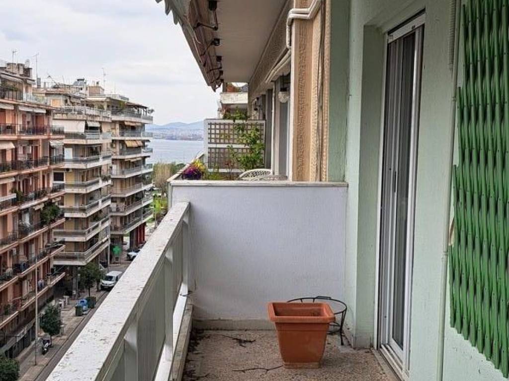 Thessaloniki, Martiou - Apartment 116sqm bedrooms 2, levels 1, 6th, very good condition, year built 1973, energy class F, living room, hall, kitchen, bathroom, wc, heating type: autonomous (natural gas), air condition, dual aspect apartment, luminous, sea view, frontage, tents, elevator, aluminum frames, double glazed windows, door screen, wood & marble floors, separate kitchen, secure door, video doorbell, pets allowed, within city plan, residential zone, southern orientation, access from asphalt, investment property, close to bus stop (up to 50m), close to sea (up to 100m).