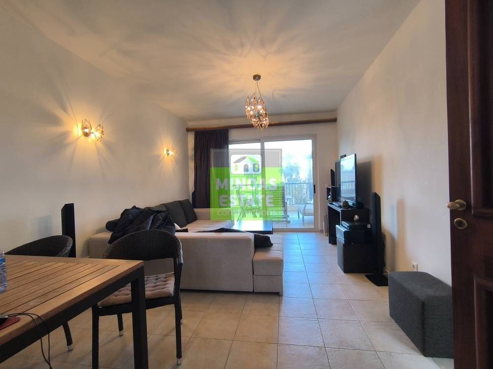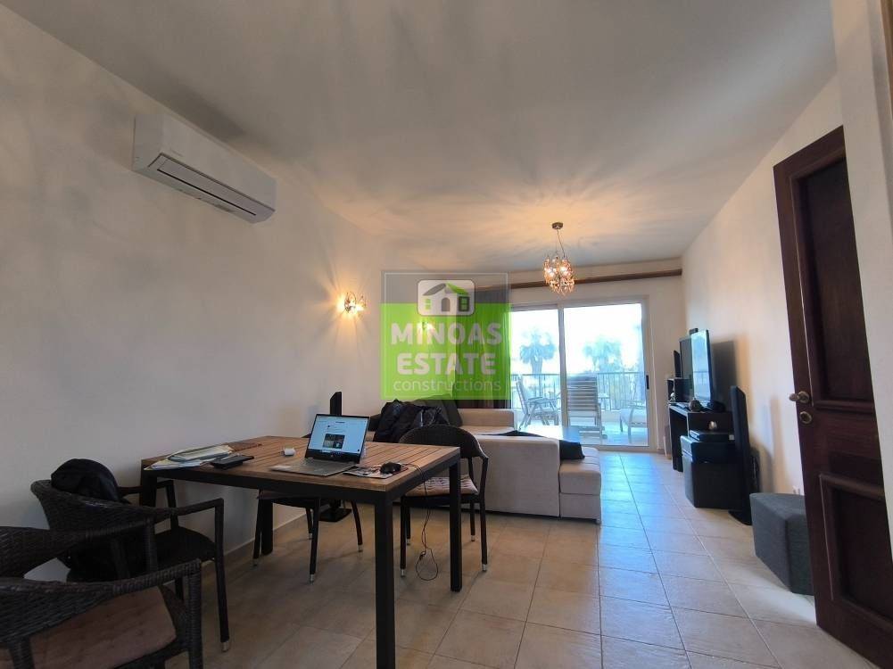 For sale: airy, bright and elegant apartment of 52 sq.m., frontage, on the 1st floor, in a neat residential complex in the area of Maleme Platania.