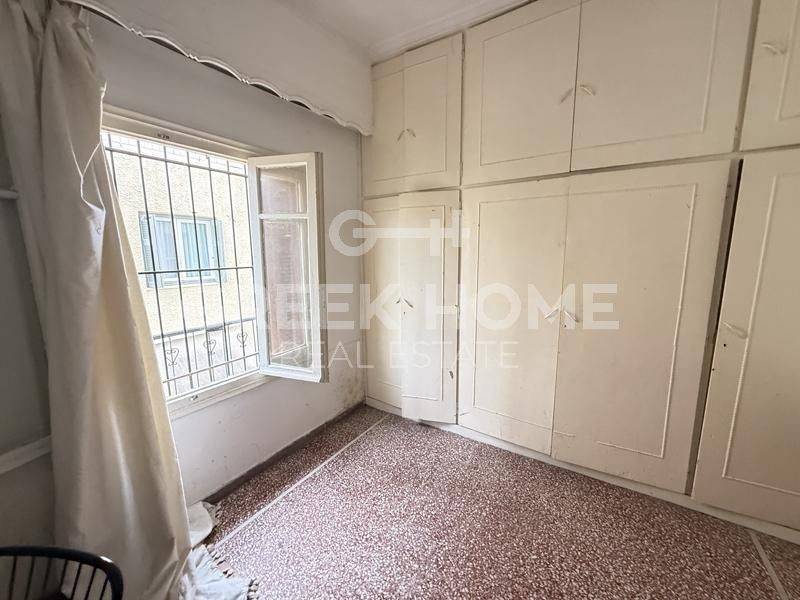 Moschato - Apartment 62sqm bedroom, 1st, needs renovation, year built 1957, energy class G, living room, hall, kitchen, bathroom, heating type: autonomous (electricity), air condition, quiet, dual aspect apartment, luminous, unobstructed view view, frontage, painted, balconies, loft storage, wooden frames, mosaic floors, separate kitchen, without common charges, pets allowed, investment property, special offer, commercial use, close to market (up to 100m).
