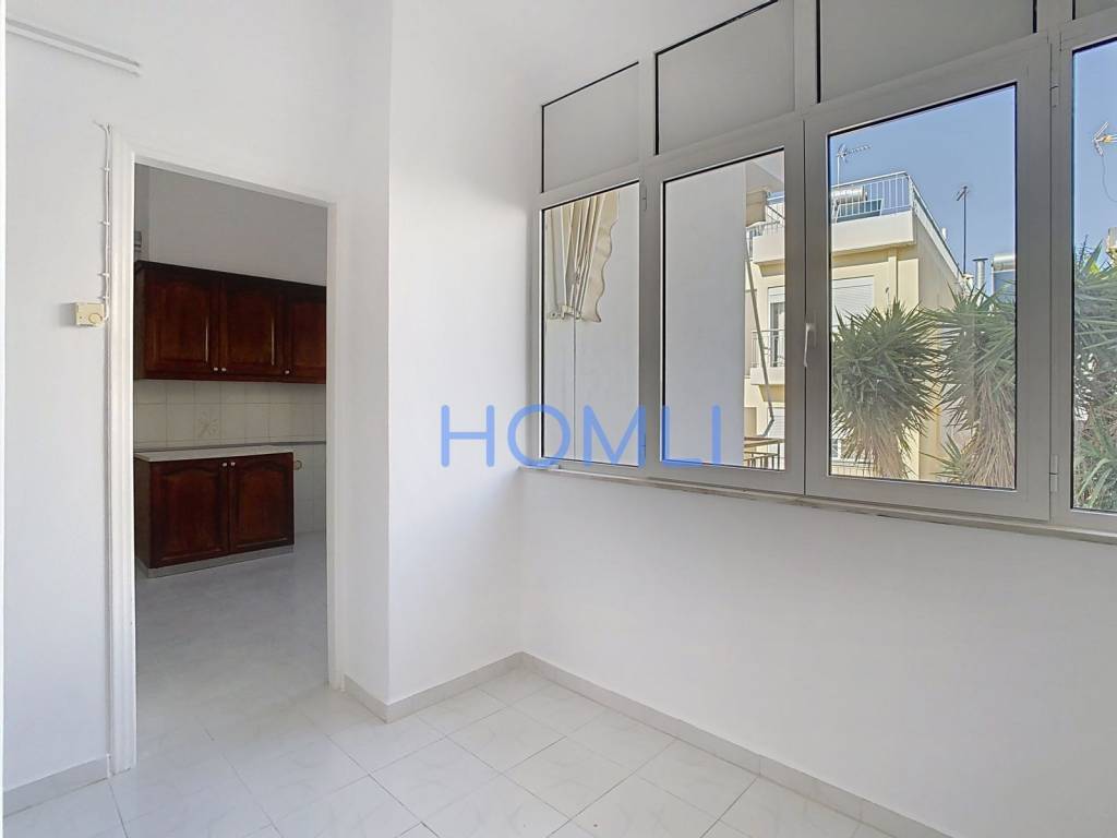 Recently renovated and spacious apartment with an office space and a second bathroom, in a quiet neighborhood in Polygono. It is airy and has an excellent layout, an office space, autonomous oil heating, a security door, aluminum frames, screens, and awnings. It is located in a privileged location as it is close to sports facilities, a hospital, local schools, recreational parks, and has easy access to main roads. HOMLI, property code 27868, contact us by phone at 2104446498.