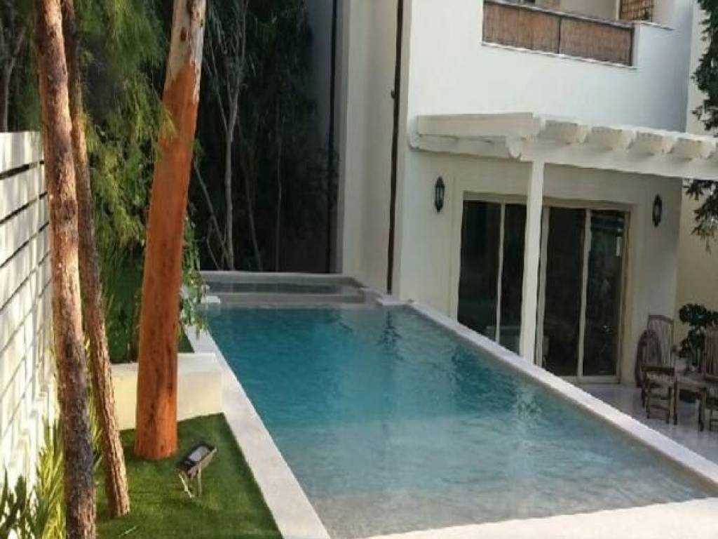 GLYFADA - GOLF, House,, Rental, 470 sq.m, on a plot of 450 sq.m, year built 2005, 7 rooms, Basement, Ground Floor, 1st, 2nd, Various Characteristics: Balcony, Bath (6), Escalator, Fire Place, Garden, Kitchen, Living room, Playroom, Refurbished, Store Room, Swimming Pool, Toilet, Master Bedrooms: 5 Master Bedrooms, Flooring: Wooden floor, Heating: Air Conditioning, Autonomous Heat oil, Access road, Aluminium panels, Bright, Double-glazing, Electric Roller Windows, Facade, From Side to Side, Luxury, Painted, pets allowed, Residential area, Screens, Security Alarm, Security Door, Solar Heating, Tents, Weekend Residence, In perfect condition: Pets allowed: Satellite dish: For investment: Parking area: Parking, Energy class: A. property ID: 50181, www.nova-terra.gr