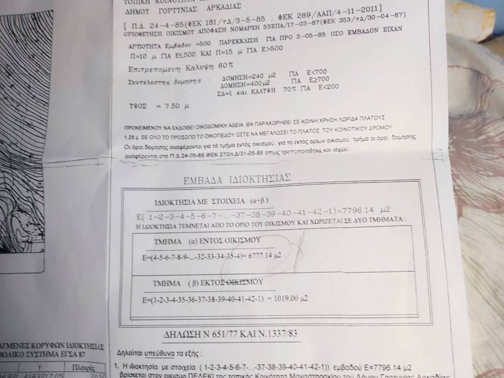 Πωλείται εντός σχεδίου στο πελέκι Γορτυνίας κοντά σε Κοντοβάζαινα 6800τμ για διάφορες χρήσης .εντός οικισμού.