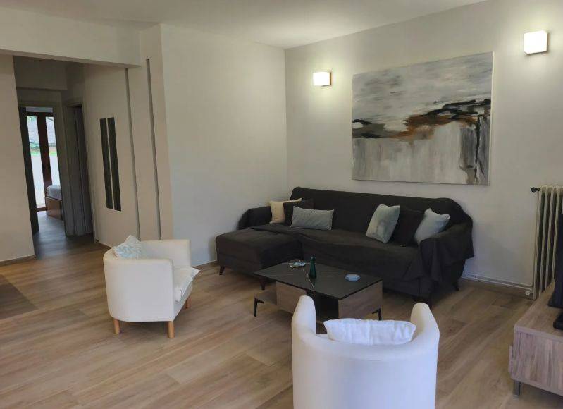 Available for rent: newly built 63 sq.m. ground floor apartment in Voula – Evryali. The property consists of one bedroom, one bathroom, a kitchen, and a spacious living room, offering a modern and functional layout for comfortable daily living. Built in 2023, the apartment is in excellent condition. It features central heating with oil, air conditioning, aluminum frames with double-glazed windows, and wooden flooring. It is delivered painted, fully furnished, and equipped with electrical appliances. The apartment is bright and modern, with an eastern orientation and views of greenery and open space. It includes a garden with lawn and trees, as well as an internal courtyard, providing a pleasant and private outdoor area. It is located in a quiet neighborhood, close to public transport, parks, the sea, squares, shopping areas, and dining options. The indicated location is approximate. For more information or to schedule a viewing: KOSMOS REAL ESTATE Property Manager: Pantelis – 6986870912 padelis@kosmosrealestate.gr www.kosmosrealestate.gr