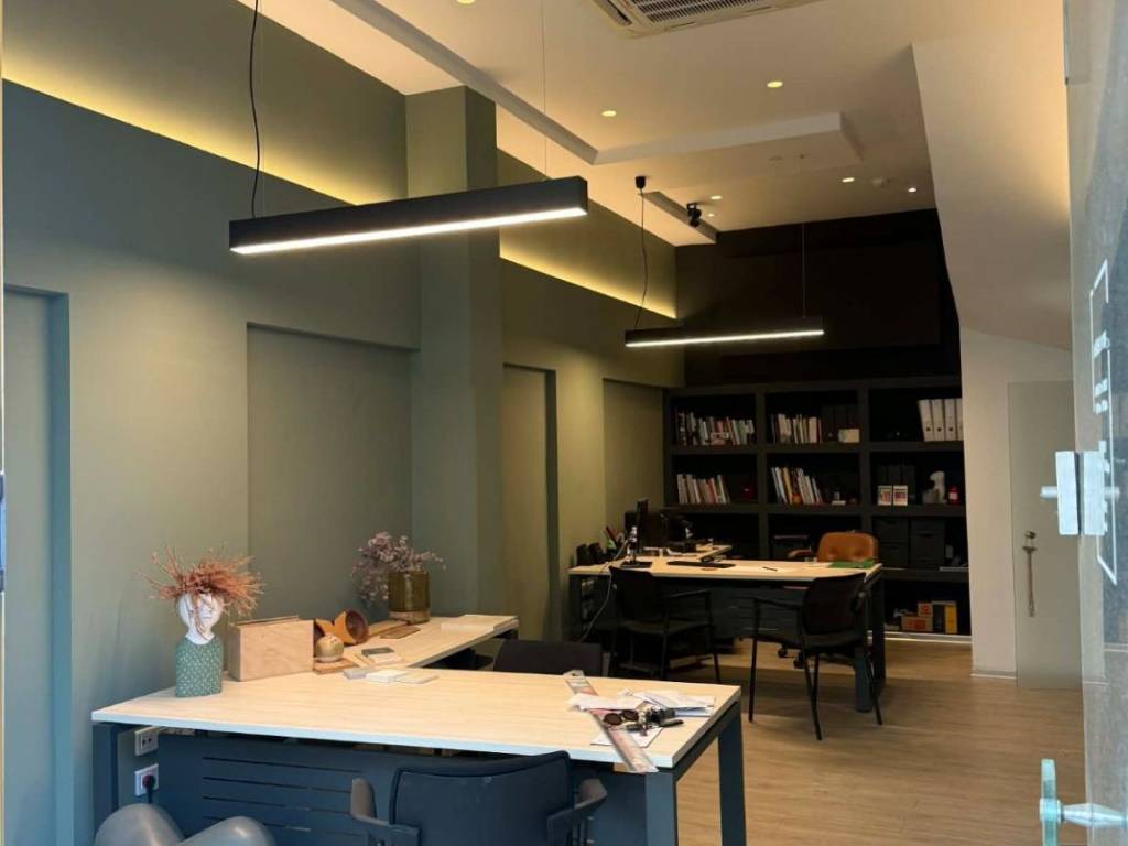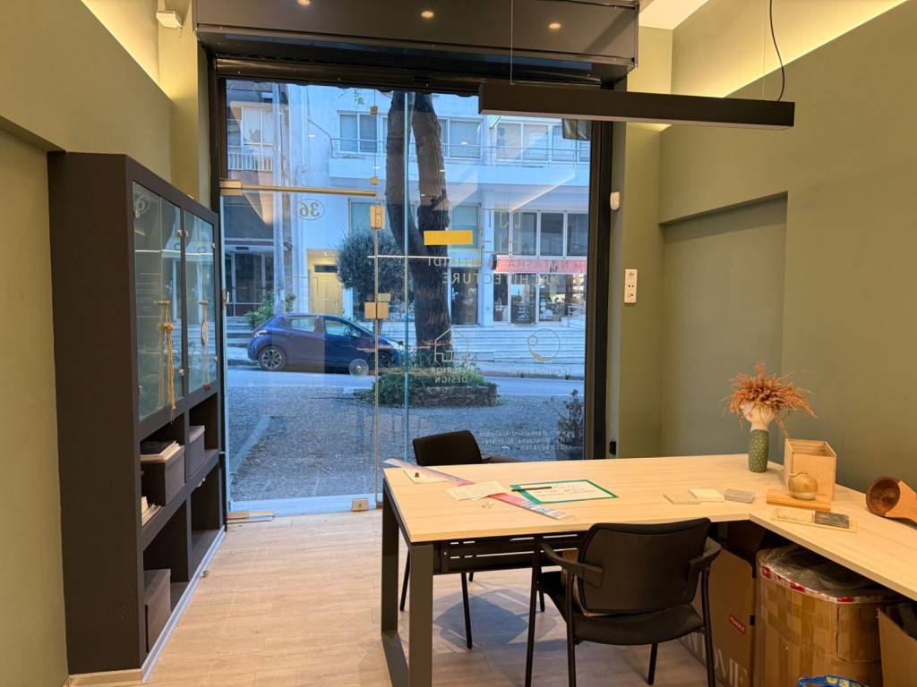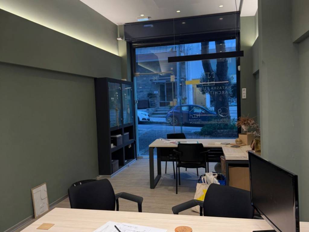 Iσόγειος χώρος διαμορφωμένος ως γραφείο νοικιάζεται πλήρως εξοπλισμένος ( 2 γραφεία, καρέκλες, φωτιστικά, ψυγείο κλπ). Διαθέτει wc, κουζινάκι, αποθήκη, πατάρι, συναγερμό, ρολό ασφαλείας και κλιματισμό.
