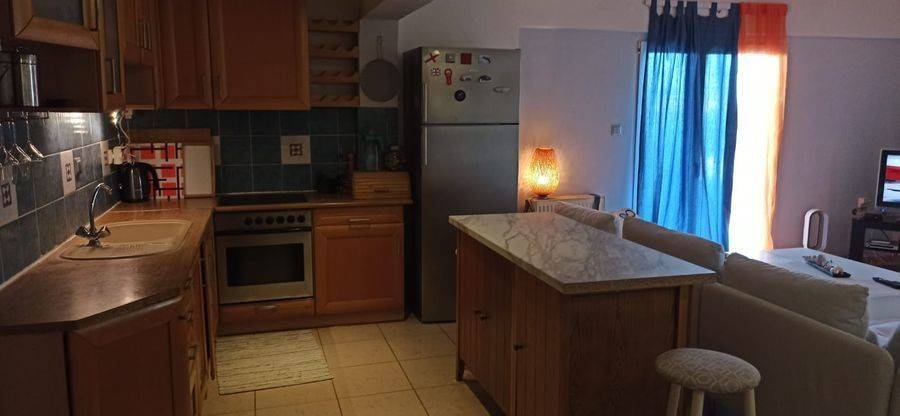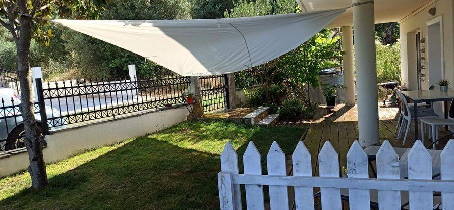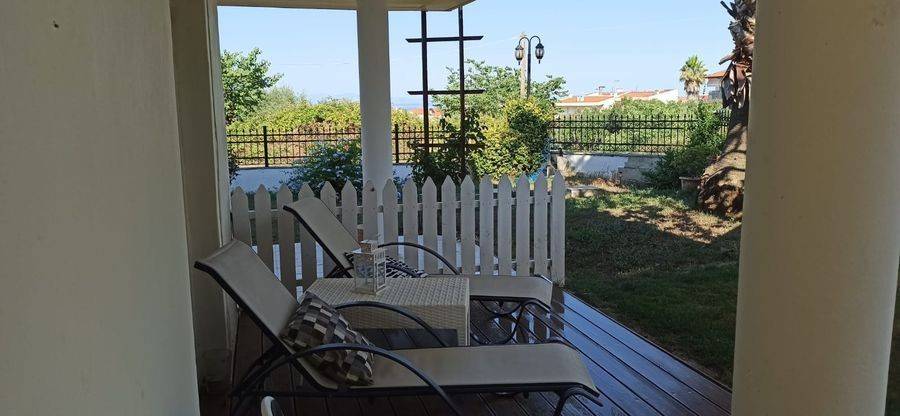 For rent from My Home Properties, a renovated ground floor detached house of 100 sq.m. in Kriopigi, Halkidiki. It consists of two rooms, a living room, a kitchen, a bathroom and a terrace. It has heating, air conditioning, a solar water heater, a garden and a parking space. It is delivered furnished and equipped with electrical appliances. It is located in a quiet area with a view, close to the village, shops, supermarkets, public transport and very close to the sea. To indicate the property, it is necessary to present a police ID and a VAT number.