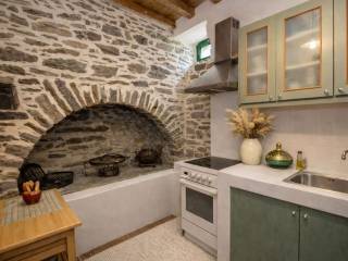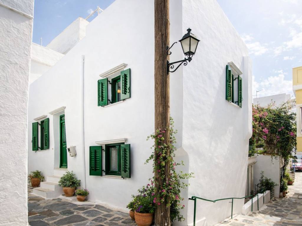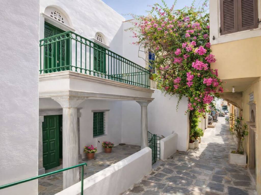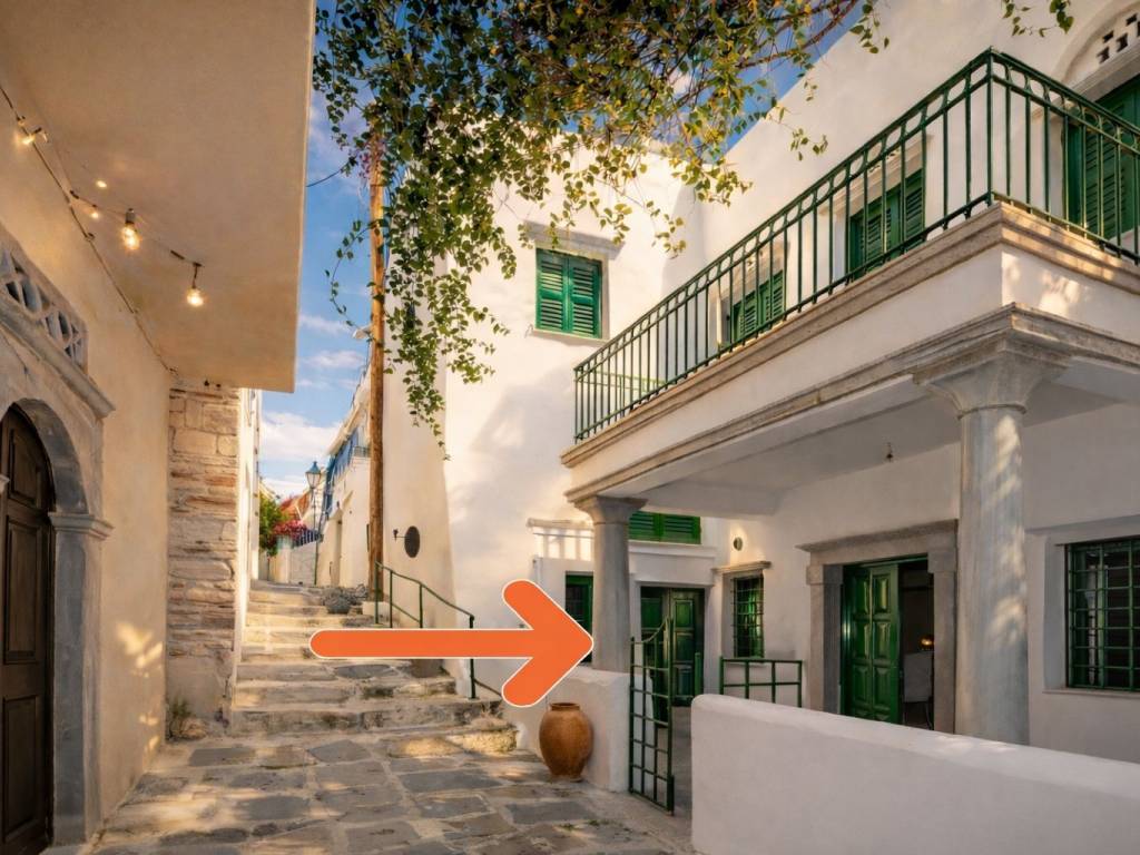 Historic Stone House in the Old Town of Tinos – “Maison Athena” A traditional stone residence is offered for sale in the center of the old town of Tinos, within short walking distance of the sea and the seafront promenade. The property was fully renovated in 2022. Located in a quiet alley, the house is approximately a 2-minute walk from the beach and the central pedestrian street, which offers a range of shops, cafés, and traditional tavernas. The renovation preserved key architectural features of the local Cycladic tradition, including marble arches and built-in wall niches, while integrating modern standards of comfort. The interior benefits from natural light and a functional, well-organized layout. The property comprises a fully equipped kitchen, two living areas, and four bedrooms. Additional features include air conditioning, and hot water is provided via a solar-powered system. The house is arranged over two levels, each with an independent entrance. The upper level is accessed from a higher cobblestone lane, while the ground floor has a separate entrance from a lower cobblestone street. An internal staircase connects the two levels, allowing the property to be used either as a single residence or as two independent units. This configuration offers flexibility for both private use and rental purposes. The surrounding area provides immediate access to restaurants, local shops, and essential services. The property is centrally located with convenient access to all key infrastructure.