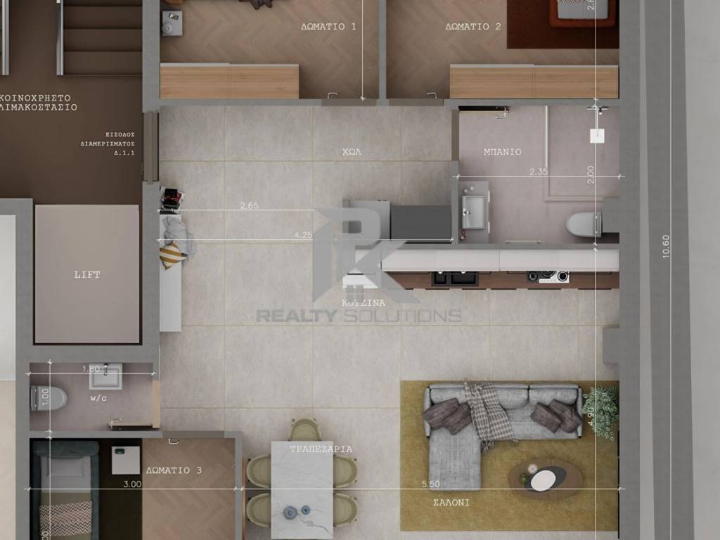 Apartment For sale, floor: 1st, in Kalamaria - Agios Ioannis. The Apartment is 110 sq.m.. It consists of: 3 bedrooms, 1 bathrooms, 1 wc, 1 kitchens, 1 living rooms and it also has 1 parkings (1 Open). The property was built in 2025. Its heating is Personal with Natural gas, Underfloor heating are also available, it has Thermal brake frames with Double glazed windows, the energy certificate is: A+ and its floors are Tiles. The property's status is: New development and it has South orientation. The Apartment is With Facade, Airy, Luxury and it also has the following unique features and advantages: Elevator, Storage, Security door, Security alarm. Price: €340.000. PK Realty Solutions, contact phone: 6984192750, email: info@pkrealtysolutions.com, website: