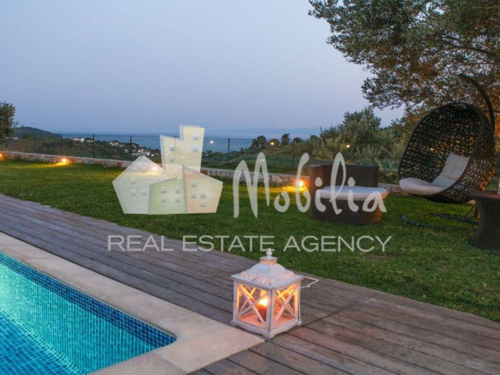 Villa For sale in Skiathos - Platanias. The Villa is 300 sq.m. and it is located on a plot of 5,970 sq.m.. It consists of: 5 bedrooms, 5 bathrooms and it also has 3 parkings (3 Open). The property was built in 2002. Its heating is Autonomous with Electricity, Air conditioning are also available, it has Wooden frames with Double glazed windows, the energy certificate is: C and its floors are Tiles, Stone. The property's status is: Excellent condition, it is close to Sea, Seaside, Super Market, Cafe/Restaurants, it has Sea, Nature, Openness, Good, Panoramic, Unobstructed view. The Villa is Bright, Airy, Sunny, Detached, Seaside, Luxury, Stone house, Internal staircase, Swimming pool, Garden. Mobilia Real Estate, contact phone: 2107563200, 2107563202, email: info@mobilia.gr, website: https://www.mobilia.gr