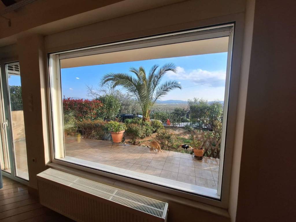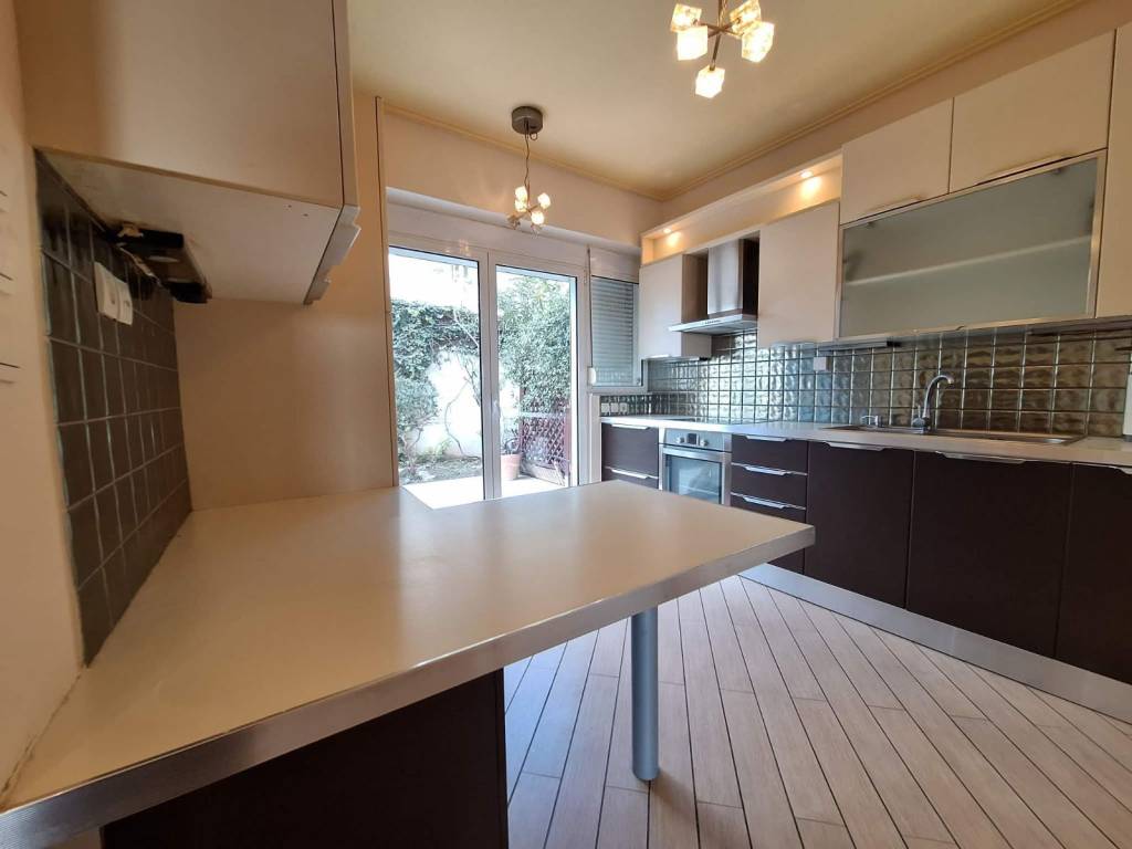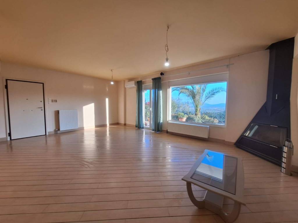 Bright ground-floor apartment (96 sq.m.) with private front & rear gardens, located in a quiet area with no aircraft noise and underground parking. Exceptional ground-floor apartment of 96 sq.m. in a small residential building, located in a quiet area, offering exclusive use of a front and rear garden, creating the feel of an independent home. The property features a bright open-plan living room and kitchen with an energy-efficient fireplace, large openings, and pleasant green view. The kitchen includes Italian cabinets, built-in appliances, refrigerator, and a breakfast bar. It consists of 2 comfortable bedrooms with wardrobes, a bathroom with natural light, a separate laundry area with storage spaces. Key features: • Autonomous heating & boiler • Air conditioning (main area) • Energy fireplace • Alarm system • Underground parking • Storage room • Security door • Aluminum frames with double glazing Quiet location with no aircraft noise. Location: • 5 km from Athens International Airport • 5 minutes from Attiki Odos • 10 minutes from suburban railway (Kantza) • Close to shops, schools and services Front garden is well-maintained, while the rear garden offers additional privacy. Ideal for a couple or small family. Pets allowed upon agreement Viewings by appointment No agents please