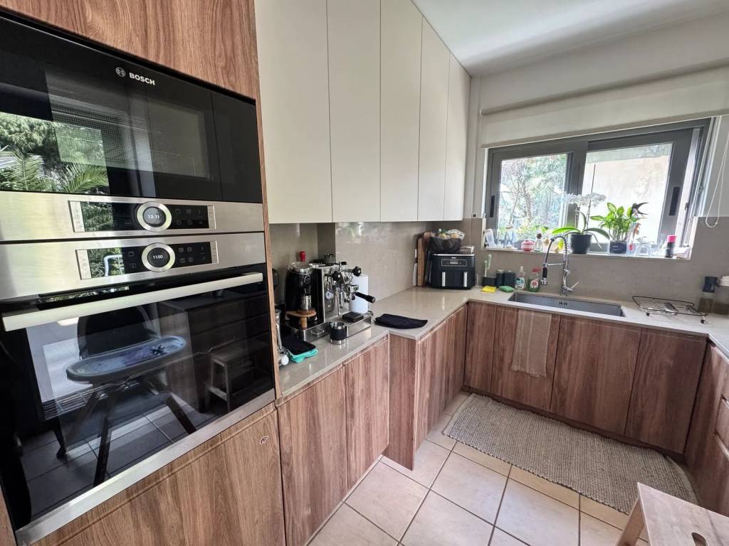 3 υπνοδωμάτια, 2 μπάνια. Αυτόνομη θέρμανση ανα όροφο (φυσικό αέριο) & ηλιακός. Ανελκυστήρα, θέση στάθμευσης και αποθήκη. Αποκλειστική χρήση κήπου 155 τ.μ. Διατίθεται και επιπλωμένο κατόπιν συνεννόησης.