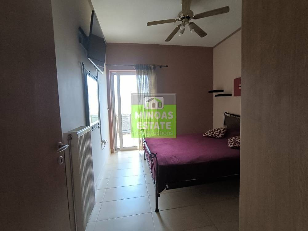 Souda, Center - Rent Apartment 55 sq.m. Luxury, front-facing apartment 55 sq.m. on the 2nd floor, with elevator, in an excellent location in the center of Souda. The property consists of: 1 comfortable bedroom, living room, kitchen, bathroom with hydromassage shower, fully furnished and equipped with electrical appliances, built in 2010, freshly painted and ready to move in. Features: Independent oil heating, air conditioning, aluminum frames with double glazing, doors securitySolar water heaterAwnings & screensTile floorsEnergy class B+Exterior covered parking spaceHas a comfortable terrace with an awning and unlimited views.It is located close to schools, pharmacies and supermarkets, offering direct access to all necessary services.Ideal for a couple or a single person.Available for long-term lease. Price: €650 Property Code: #E-201141