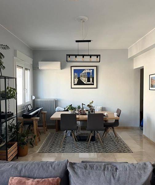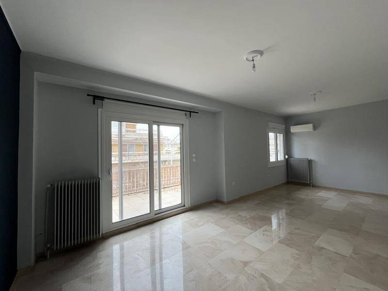 Ilisia - Apartment 122sqm unfurnished, bedrooms 3, levels 1, 5th, penthouse, renovated, year built 1975, renovation year 2021, energy class Exempt, living room, hall, kitchen, bathroom, wc, heating type: central (natural gas), air condition, quiet, dual aspect apartment, luminous, mountain view, frontage, painted, electric roller shutters, balconies, large balconies, tents, elevator, aluminum frames, double glazed windows, door screen, wood & tile floors, separate kitchen, secure door, alarm, pets allowed, residential zone.
