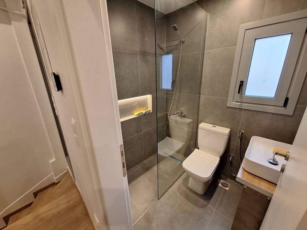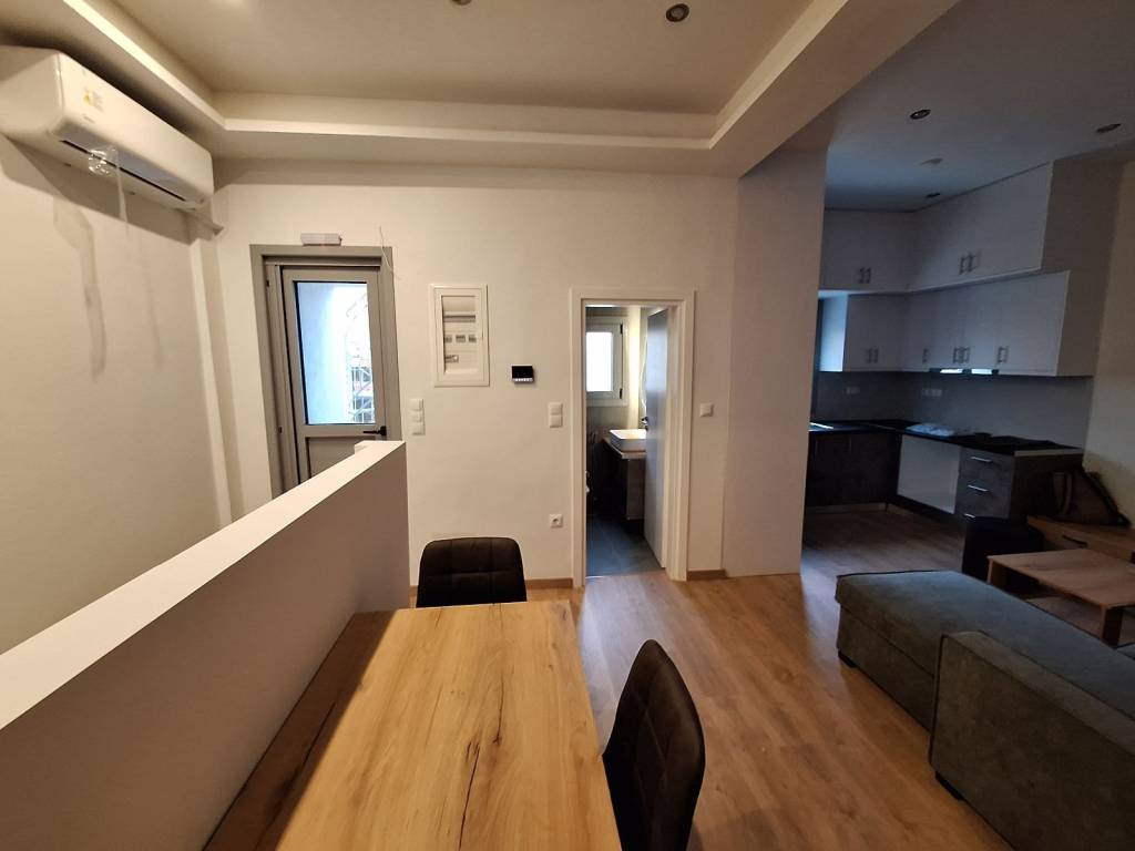Διαμέρισμα πρώτου ορόφου ,πλήρως ανακαινισμένο και πλήρως επιπλωμένο με ωραία έπιπλα λειτουργικά και με γούστο , διατίθεται και χωρίς έπιπλα , με θωρακισμένη πόρτα εισόδου , σαλόνι άριστο με ψευδοροφές και κουζίνα open plan , κουφώματα αλουμινίου με διπλά ήχο-θερμομονωτικά κρύσταλλα και σήτα , λουτρό καινούργιο άριστο , ντουλάπες μεγάλες και δύο δωμάτια ύπνου ,τρία κλιματιστικά και ηλιακός θερμοσίφωνας , έξοδο στην ταράτσα αποκλειστικής χρήσης με απεριόριστη θέα , διαθέτει και χώρο αποθήκης μέσα στο διαμέρισμα , λειτουργικό , άριστο , φρεσκοβαμμένο , φωτεινό ,ηλιόλουστο , με πολύ εύκολη πρόσβαση , σε πολύ καλό σημείο ,στην καρδιά της πόλης , μέσα στην αγορά και στα μέσα συγκοινωνίας , δίπλα στο μετρό , προτείνετε σε άτομα ή εταιρεία με απαιτήσεις
