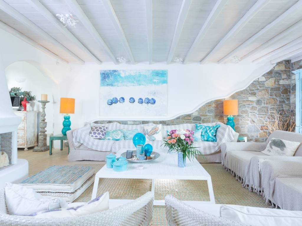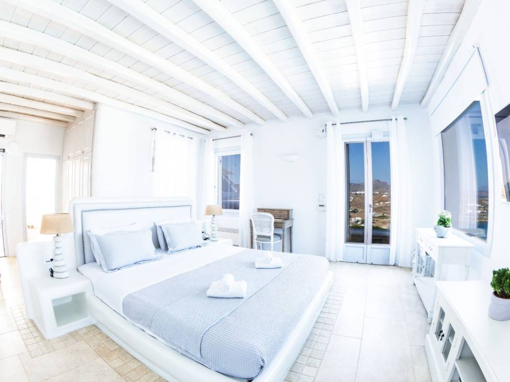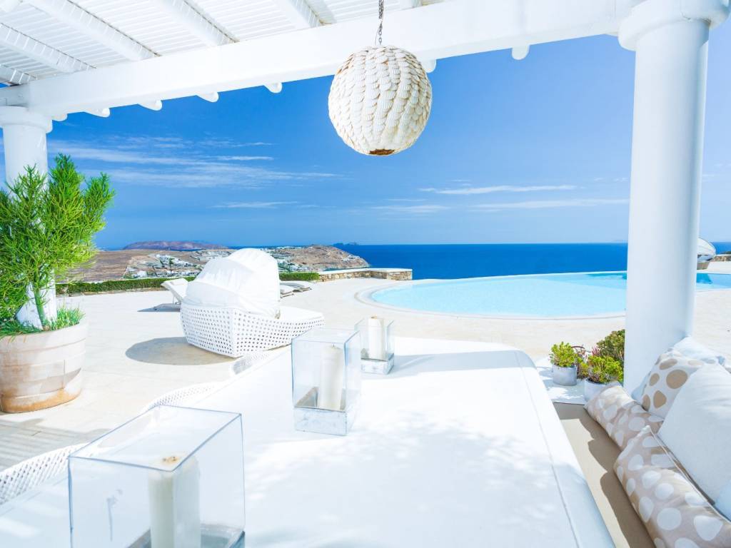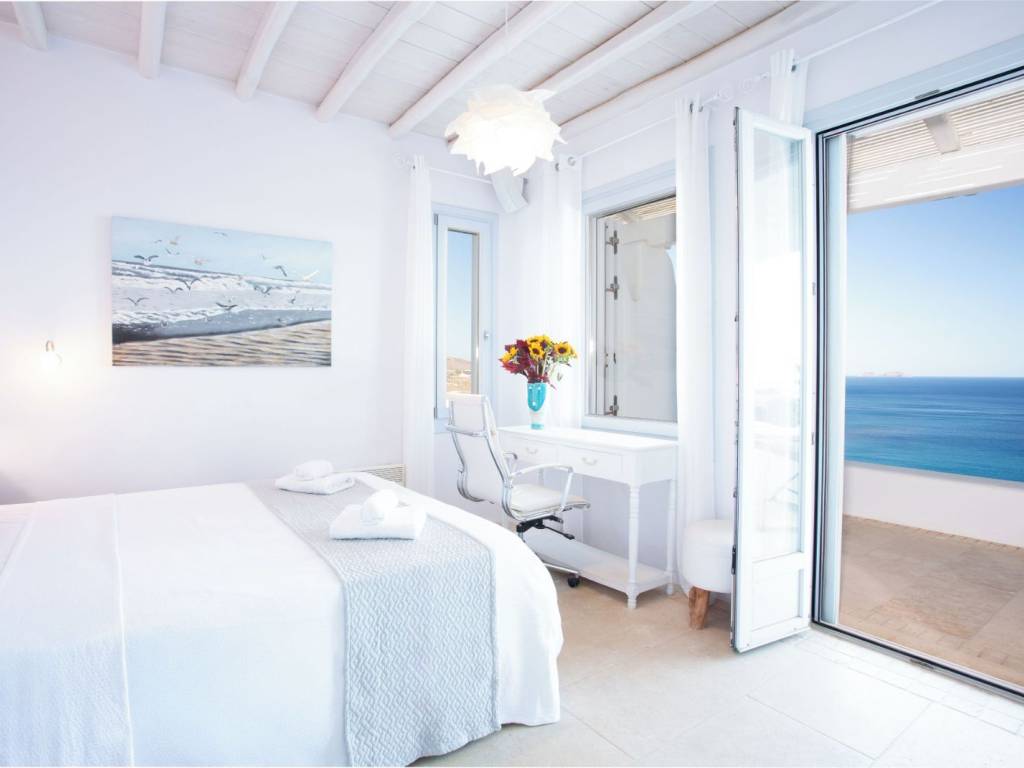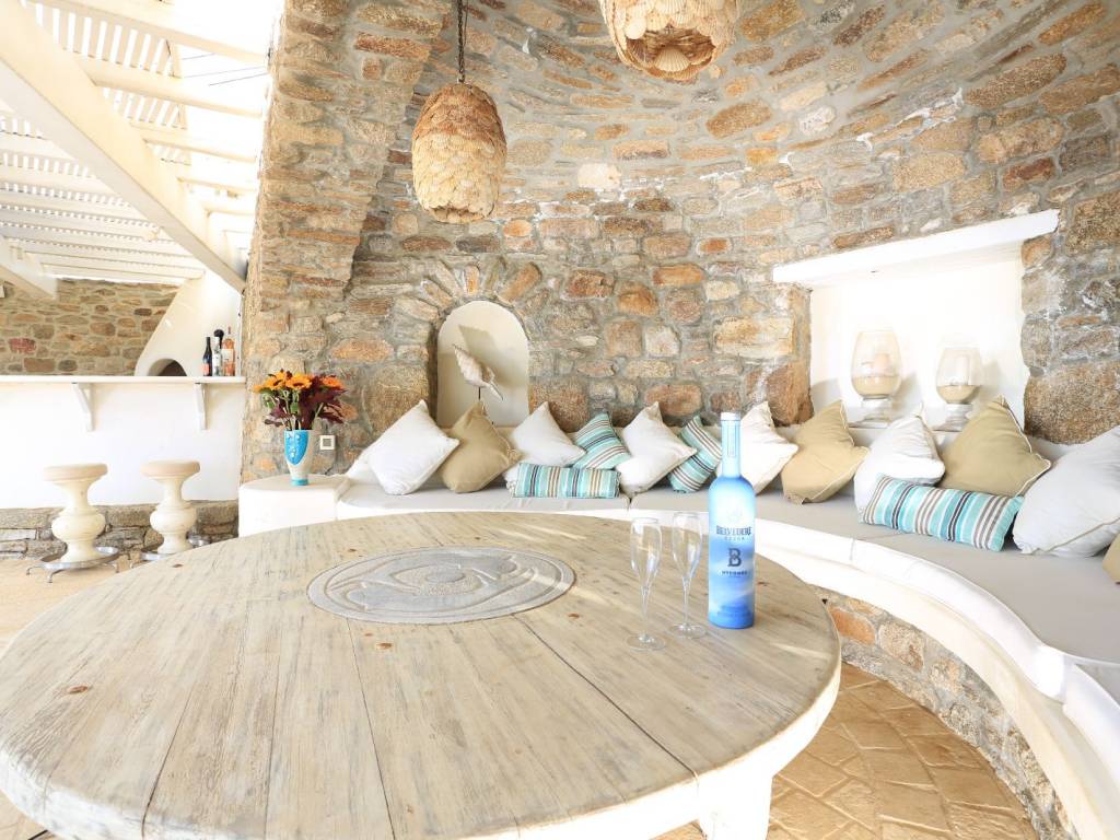 A luxurious residence, an impressive summer retreat, built on 4700 square meters of prime land, overlooking the iconic Kalo Livadi Beach in Mykonos, by far the best sandy beach of the island. Strategically placed in a wind-protected area that offers breathtaking views of the bay's azure waters. It is a private villa that underwent a full-scale renovation in 2025. The exquisite property is nestled within a 2-acre privately owned land, boasting commanding sea views of the sandy Kalo Livadi beach which is located 5 minutes walk from the villa. With endless ocean views to the south and east from its shaded pergolas and its 9 Bedrooms, all with ensuite bathrooms, the privileged guests will emerge into the stunning majestic Aegean light, delivered through landscaped gardens and natural vegetation. The spacious living spaces (1250 sq meters) harmoniously melt with the outdoors. Ideal for the stylish, offering basketball court and table tennis, this Villa is the epitome of luxury combined with that special Mykonian touch.