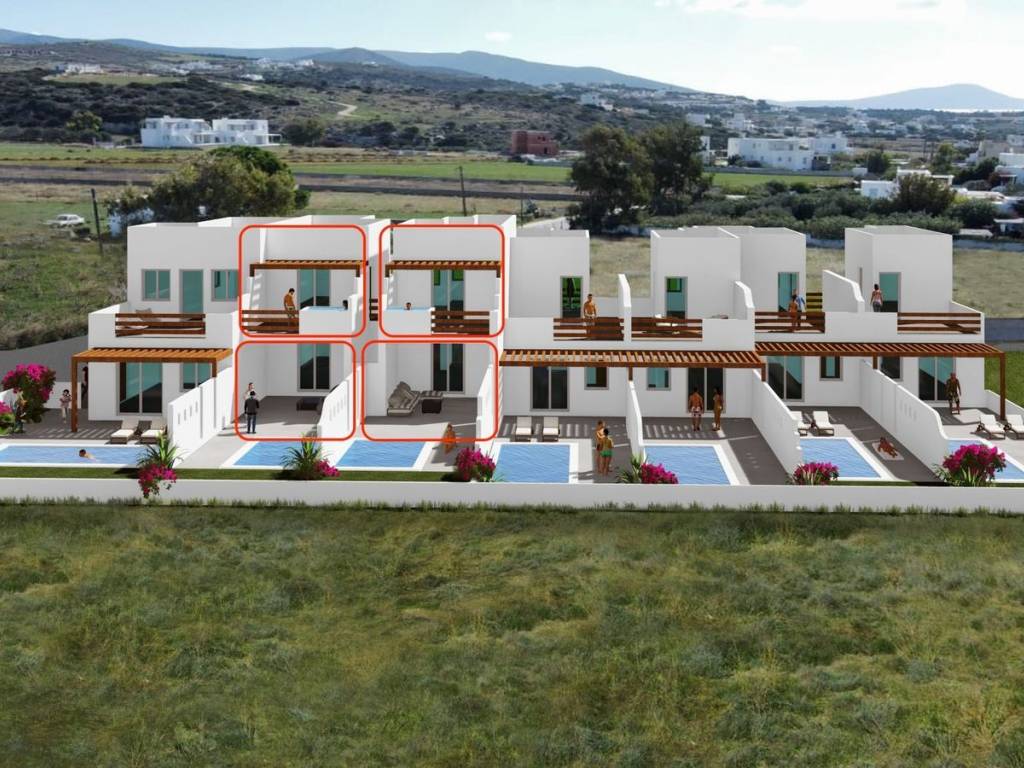 This brand-new residential complex is currently under construction, with completion scheduled for summer 2027. The development comprises four one-bedroom apartments and five semi-detached houses, all thoughtfully positioned to share the same orientation, maximizing natural light, sea views, and stunning sunset vistas towards Paros. Ideally located just 400 meters from the sandy beach of Kastraki and only 300 meters from local tavernas and beach bars, the property also enjoys close proximity (within 3 km) to Glyfada and Mikri Vigla, well-known for their windsurfing and kitesurfing facilities. The apartments (40 sq.m.) each feature one bedroom, one bathroom, a private terrace, and either a private pool or jacuzzi, offering an ideal low-maintenance holiday home or investment option. The semi-detached houses (80–92 sq.m.) are designed across two levels and include two bedrooms and two bathrooms. The ground floor comprises the living area, kitchen, and one bedroom with an en-suite bathroom, all of which have direct access to the outdoor area and private pool. The first floor hosts the second bedroom and bathroom, along with a terrace enjoying open views. During the construction phase, buyers will have the opportunity to customize interior finishes, materials, and color palettes, allowing for a personalized final result. Each property benefits from a private pergola for shading and a dedicated parking space, completing a well-balanced offering that combines comfort, location, and flexibility of use. The location, combined with the strong demand for high-quality accommodation in the Kastraki–Mikri Vigla area, positions the development as an attractive investment opportunity, with solid potential for short-term rental income and long-term capital appreciation, particularly given the limited supply of newly built, well-designed properties close to the beach. Location: Naxos is the largest and most fertile island of the Cyclades. Naxos is the largest and the largest and most fertile island in the Cyclades, located in the center of the Cyclades, south of Mykonos and east of Paros. Unique Features: Naxos is a magical destination ideal for those who wish to fill their holidays with a variety of activities and enjoy nightlife. The geomorphology of the island is unique as Naxos offers numerous options to its visitors with its beautiful picturesque mountain villages, beaches with crystal clear waters, unique architecture and archaeological monuments. Accessibility: Naxos is connected to Athens with several routes from the port of Piraeus and Rafina. During the summer season there are about 5 daily departures from Piraeus and 3 from Rafina. During the winter season there is at least 1 daily service from Piraeus. The duration of the trip from Piraeus is approximately 3 to 5,5 hours, while from Rafina the duration is approximately 3 to 6 hours. Also, Naxos has an airport which operates 10 flights daily in summer and 2 in winter. Investment Opportunity: Buying property in Naxos is a huge investment as the island is one of the top holiday destinations around the world, maintaining its high reputation and attracting more and more investors.
