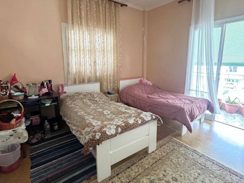 Spacious, dual-aspect, and very bright second-floor apartment for sale, with a total area of 60 sq.m., located in Kaisariani. The apartment features 1 bedroom, 1 bathroom, a living room, a kitchen, and a hall. It is a front-facing, dual-aspect apartment. The wraparound balcony surrounding the apartment offers abundant natural light and fresh air throughout the day. The building does not have an elevator. It is situated in a very central location, less than 15 minutes from Evangelismos, very close to the new Kaisariani metro station, the central square, the University campus, and bus and trolley stops. It is an ideal investment opportunity, both due to its layout and its excellent location.