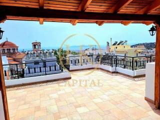 Glyfada, Terpsithea - Floor Apartment 110sqm unfurnished, bedrooms 3, 4th, penthouse, excellent condition, year built 2004, energy class B+, living room, hall, kitchen, bathroom, wc, heating type: autonomous (oil), air condition, parking covered,2, quiet, dual aspect apartment, luminous, panoramic view, frontage, storage space, solar heater, fireplace, balconies, large balconies, tents, elevator, garden, built in appliances, aluminum frames, double glazed windows, door screen, wood & tile floors, night electricity discount rate, secure door, alarm, video doorbell, luxurious, barbeque, within city plan, residential zone, eastern orientation, access from asphalt, special offer.