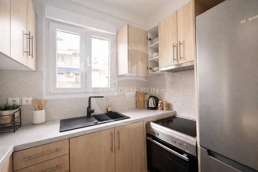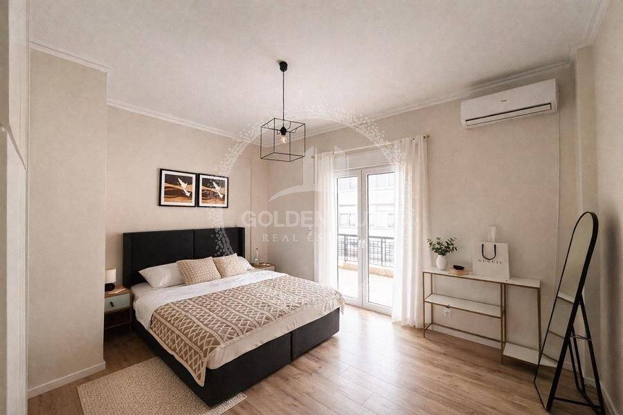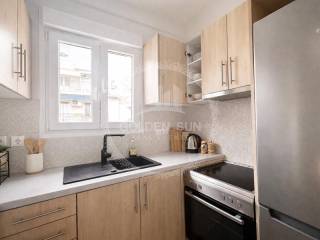 Pangrati - Apartment 80sqm fully furnished, bedrooms 2, levels 1, 4th, penthouse, fully renovated, year built 1976, energy class C, living room, kitchen, bathroom, heating type: autonomous (air condition), dual aspect apartment, luminous, frontage, painted, electric roller shutters, solar heater, balconies, large balconies, elevator, aluminum frames, double glazed windows, door screen, wood & tile floors, secure door, alarm, video doorbell, residential zone, east-southern orientation, access from asphalt, close to market (up to 100m).