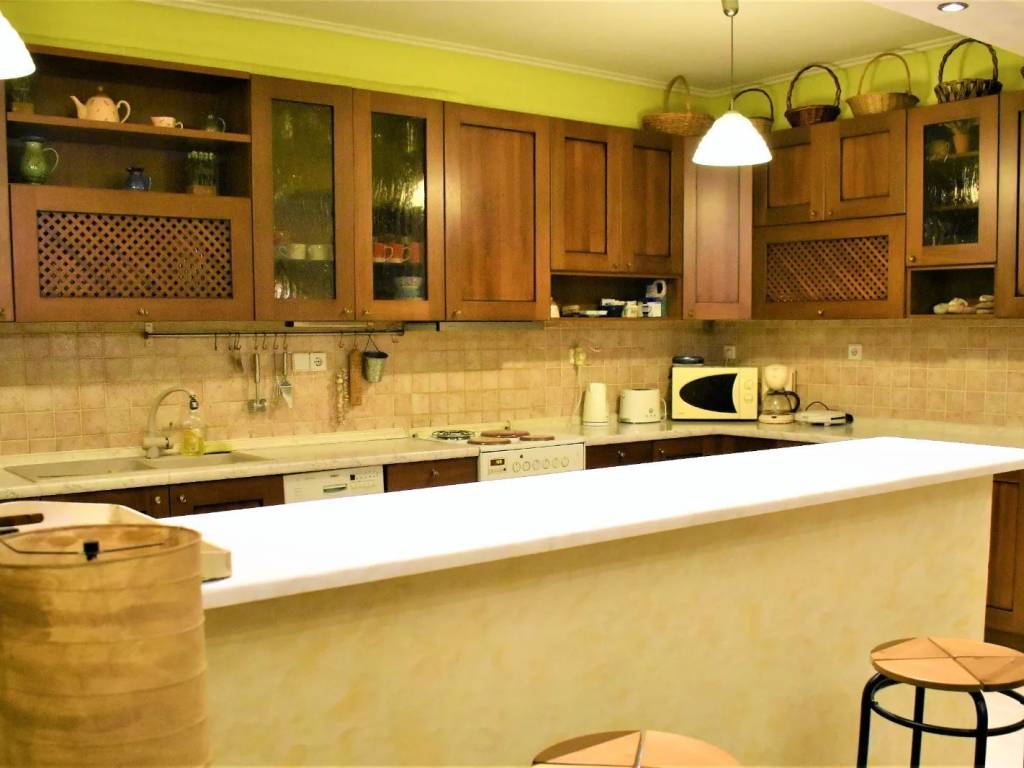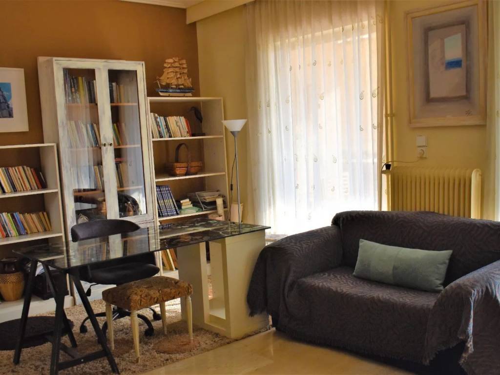 Άνετο, ηλιόλουστο, γωνιακό, προσόψεως κι ευχάριστο διαμέρισμα σε ήσυχη περιοχή με πολύ πράσινο. Πλήρως εξοπλισμένο